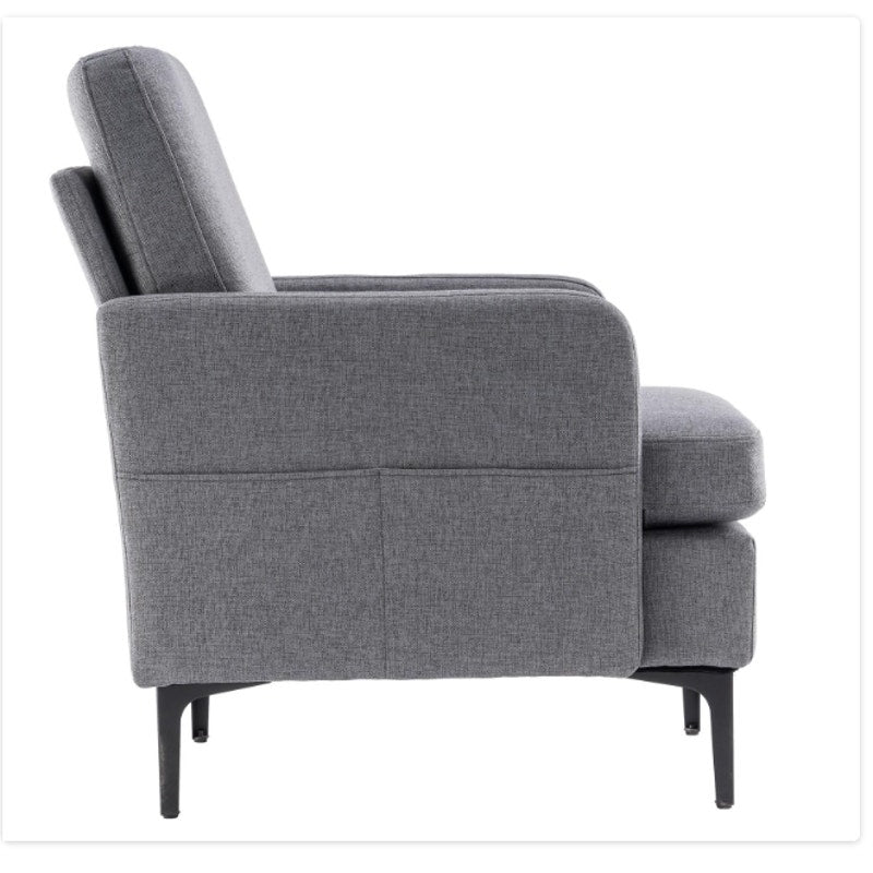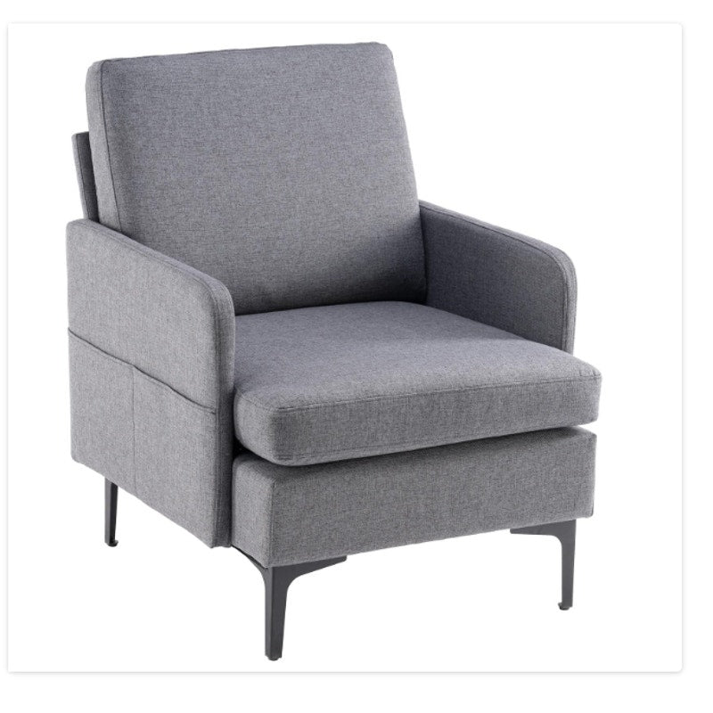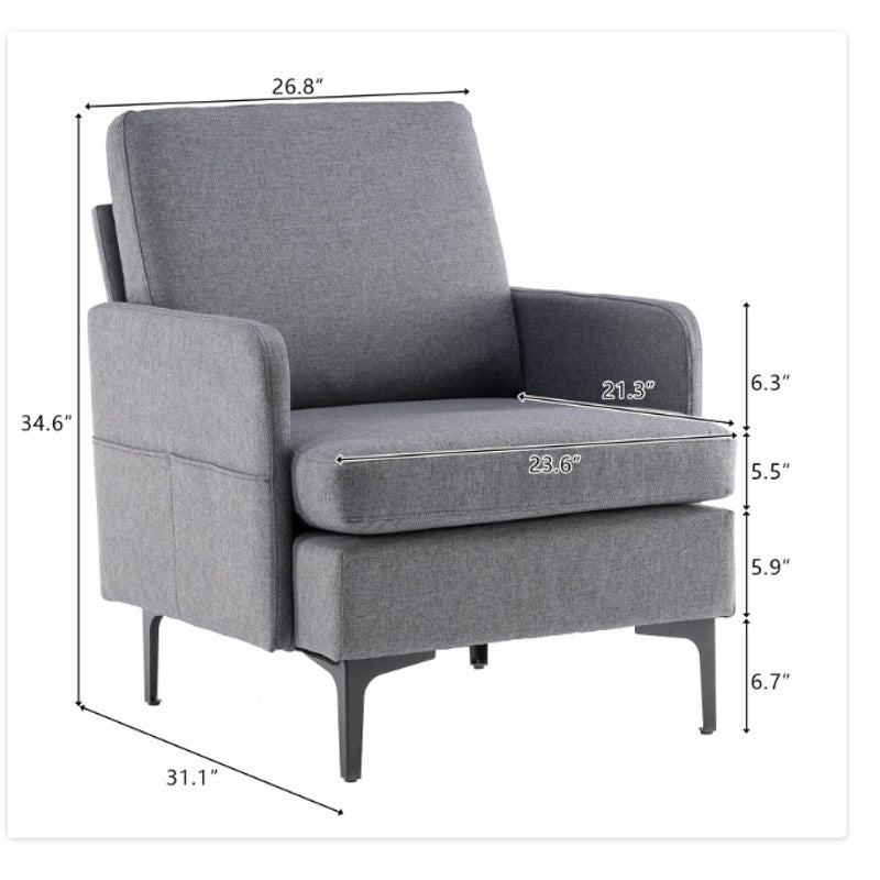 Linen Fabric Accent Chair, Mid Century Modern Armchair for Living Room - Gray