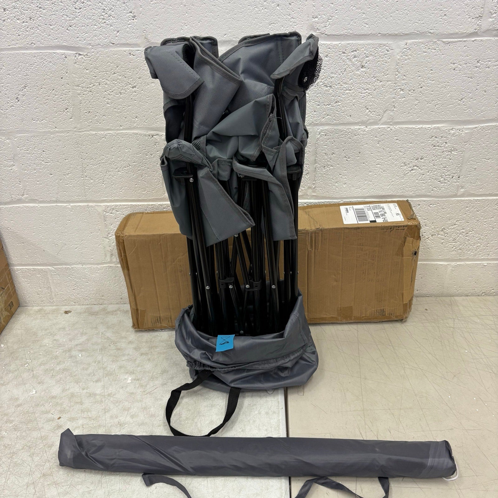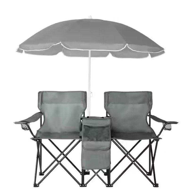 Portable 2-Person Folding Chair with Removable Umbrella, Center Storage - Gray