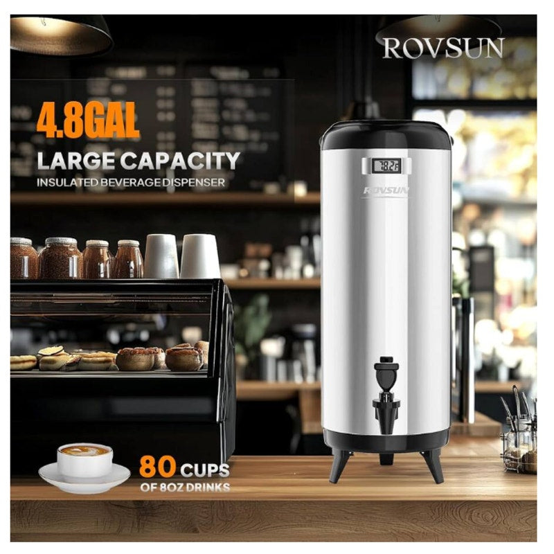 SET-OF-2 - 4.8 Gallon Insulated Beverage Dispenser Stainless Steel Temp Display