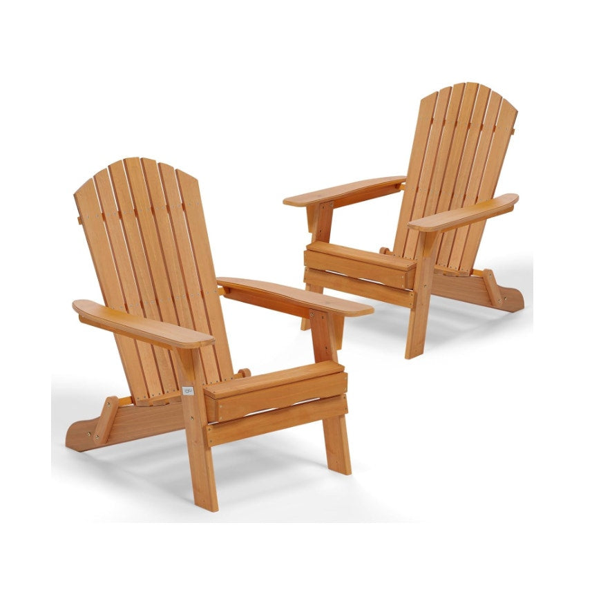Set-of-2 VINGLI Folding Adirondack Chairs, Wood Adirondack Chair Outdoor - Brown