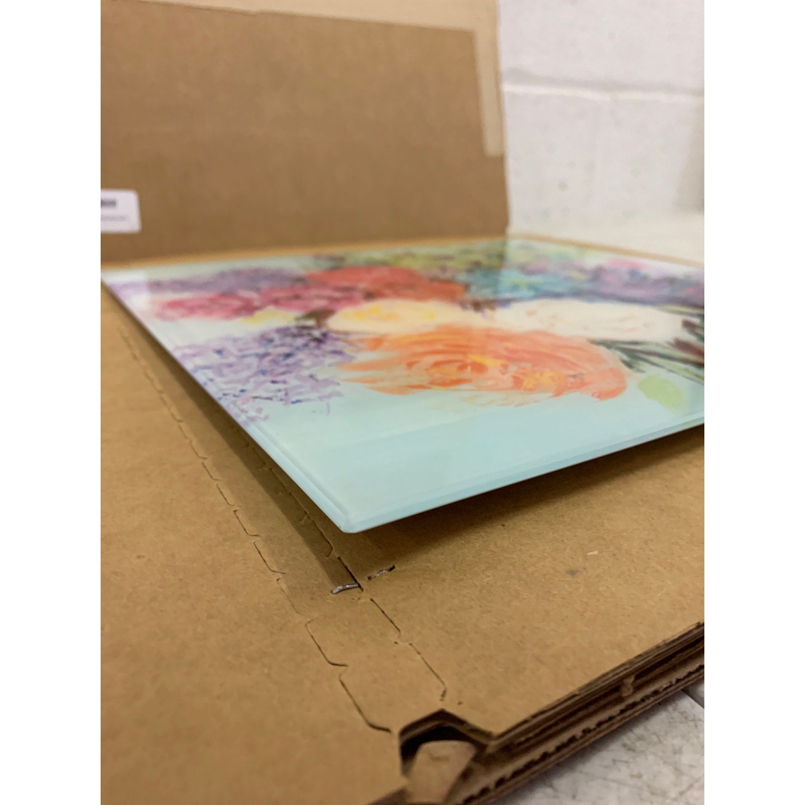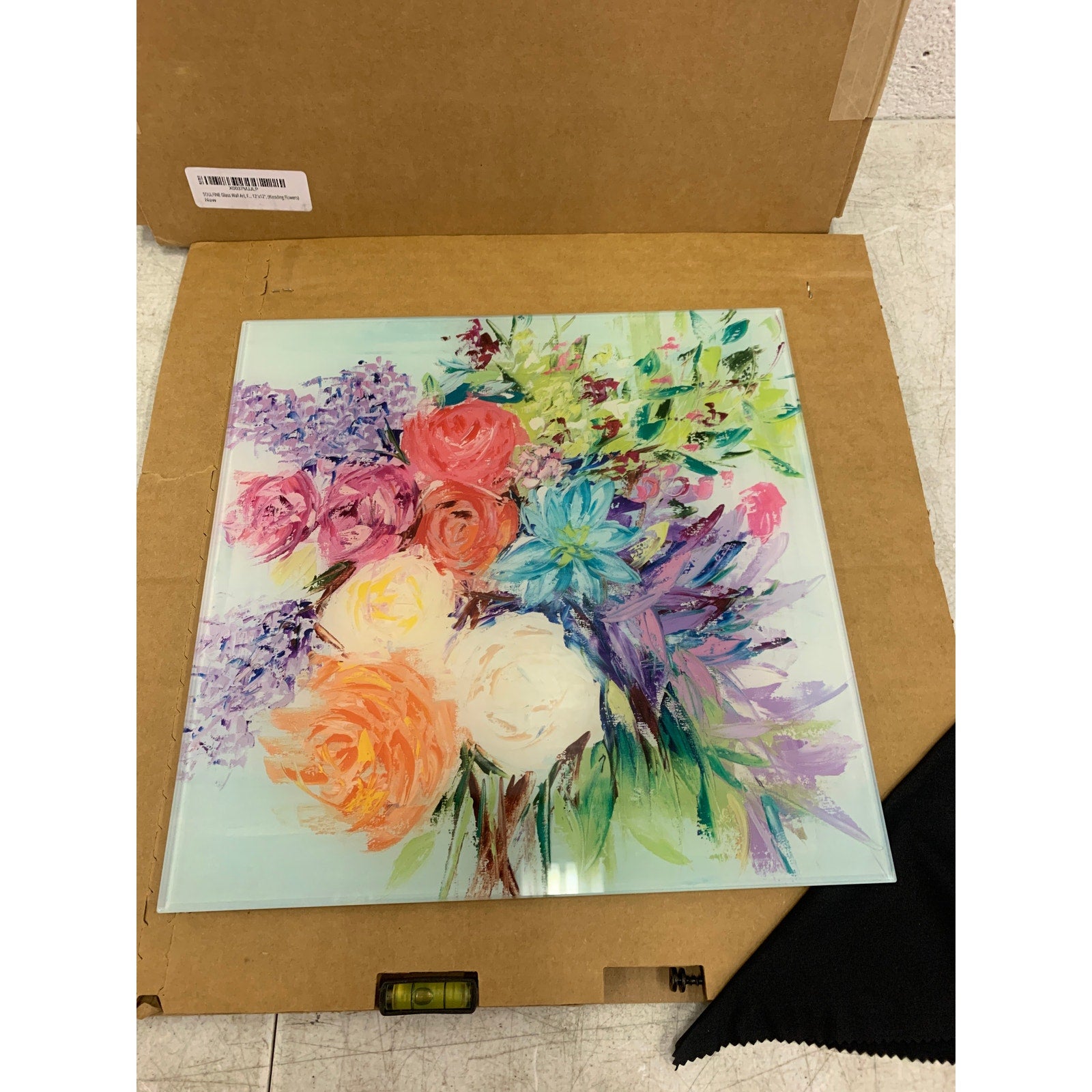 SOULFINE Glass Wall Art Frameless Multi-Color Flower Boquete 12x12"
