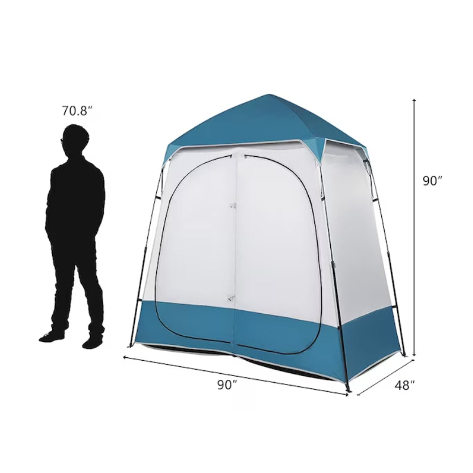 VINGLI 7.5ft Pop Up 2-Room Shower Tent with Mesh Floor and Carrying Bag - Blue