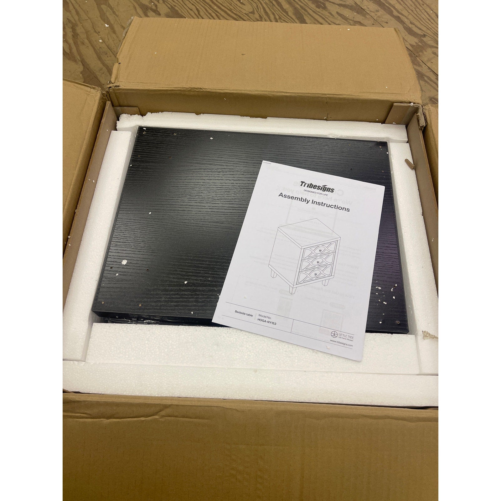 Tribesigns Modern Mirrored Nightstand 3 Drawers Slanted Legs Black Interior