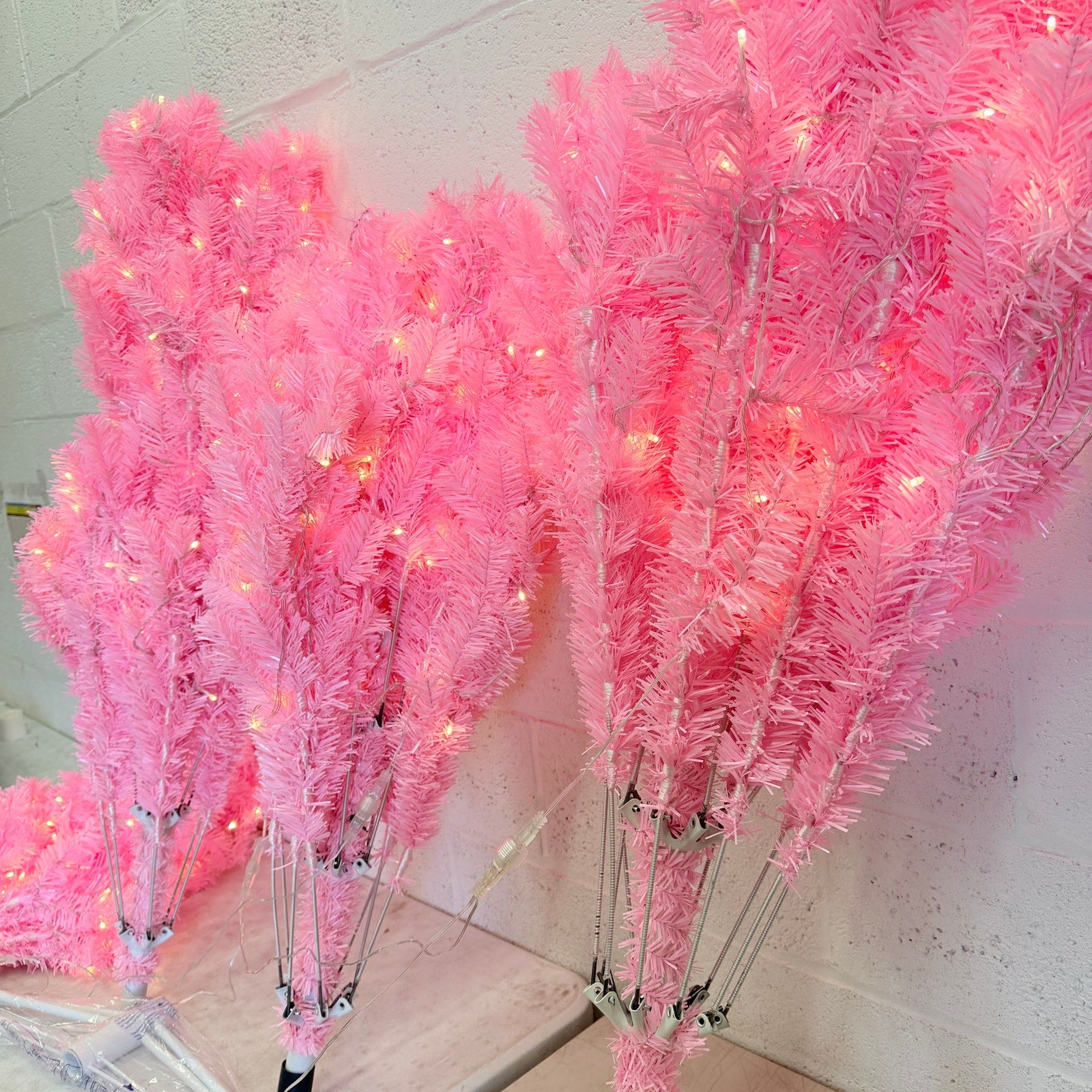 7.5ft Pre-Lit Pink Christmas Tree with Remote, Metal Base & Bright White Lights