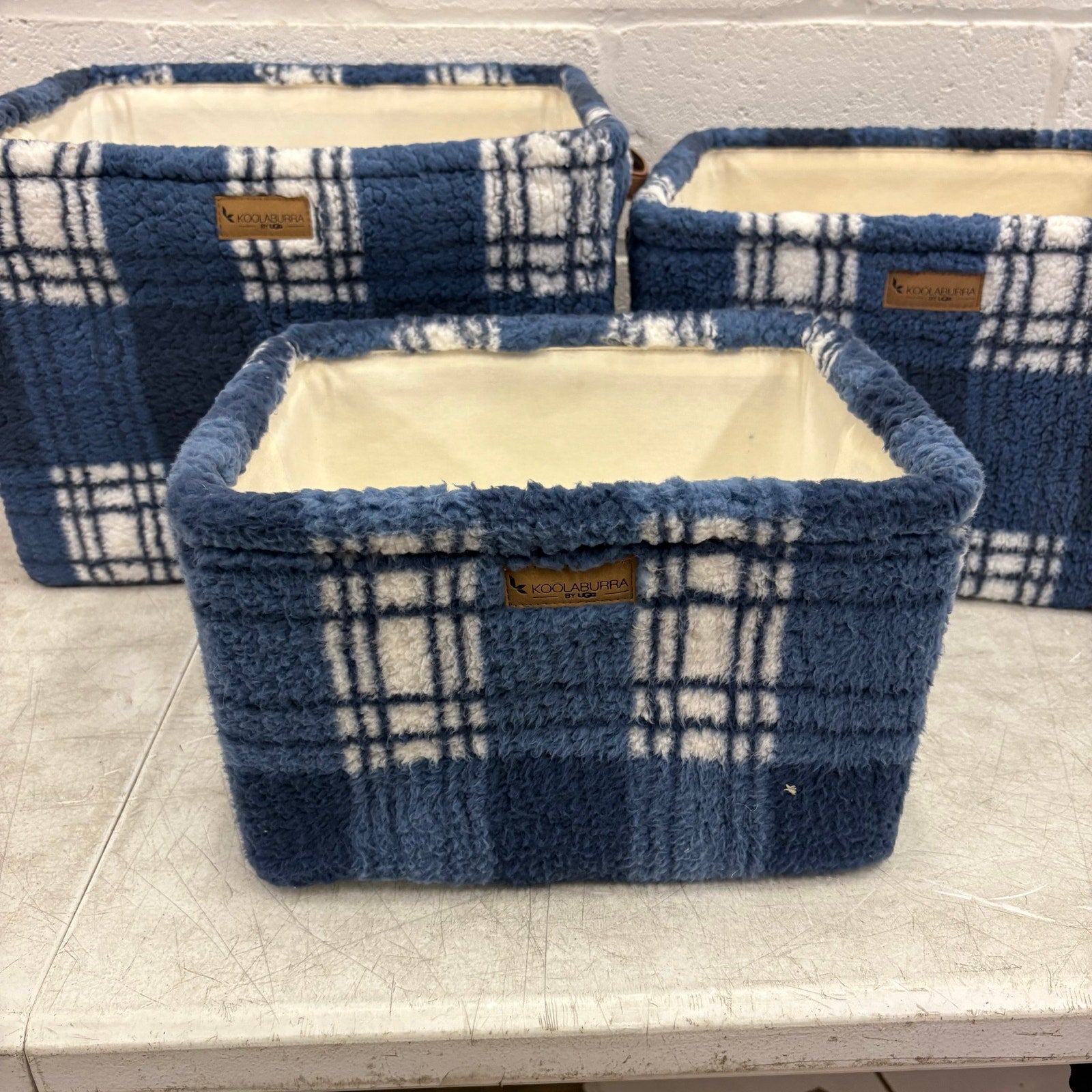 Koolaburra by Ugg 3 Piece Storage Set Soft Fuzzy Baskets Home Organization, Blue