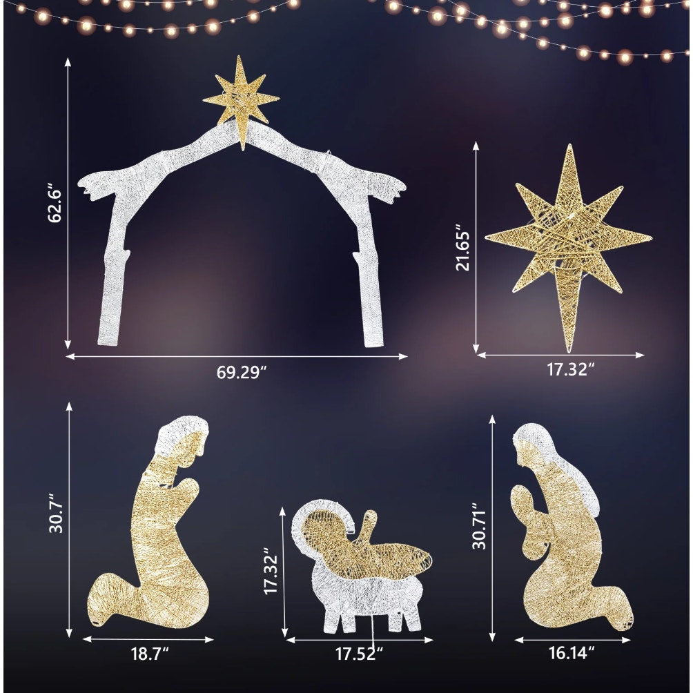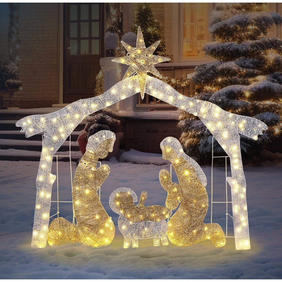 Ktaxon 6ft Christmas Lighted Nativity Scene; Glittery Christmas Outdoor Decor