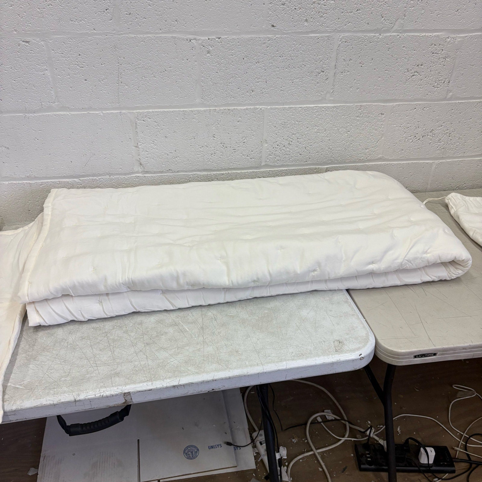 Mainstays Queen Comforter w 2 Pillow Shams Plain Design Tiny X's Stitching - Tan