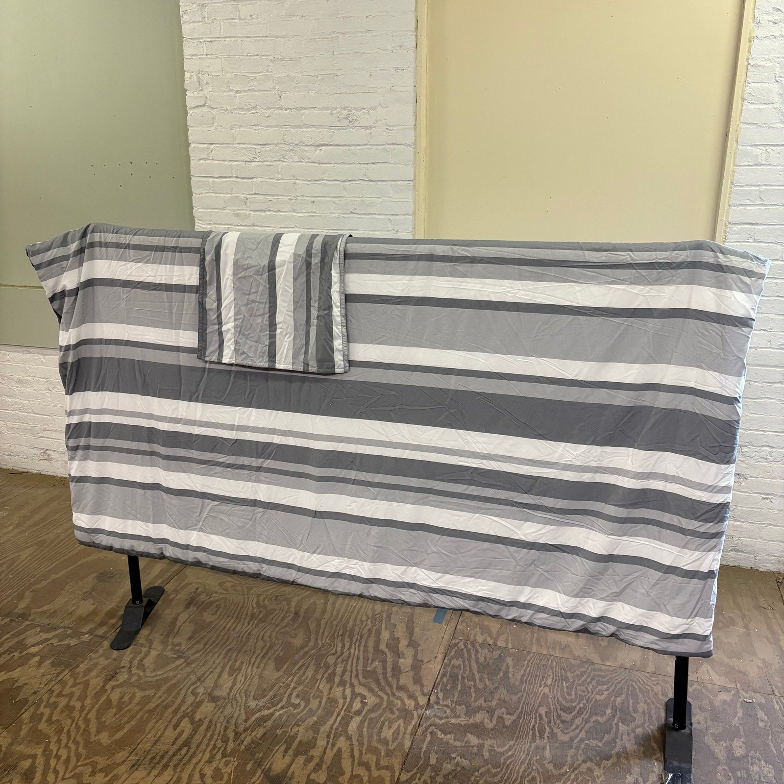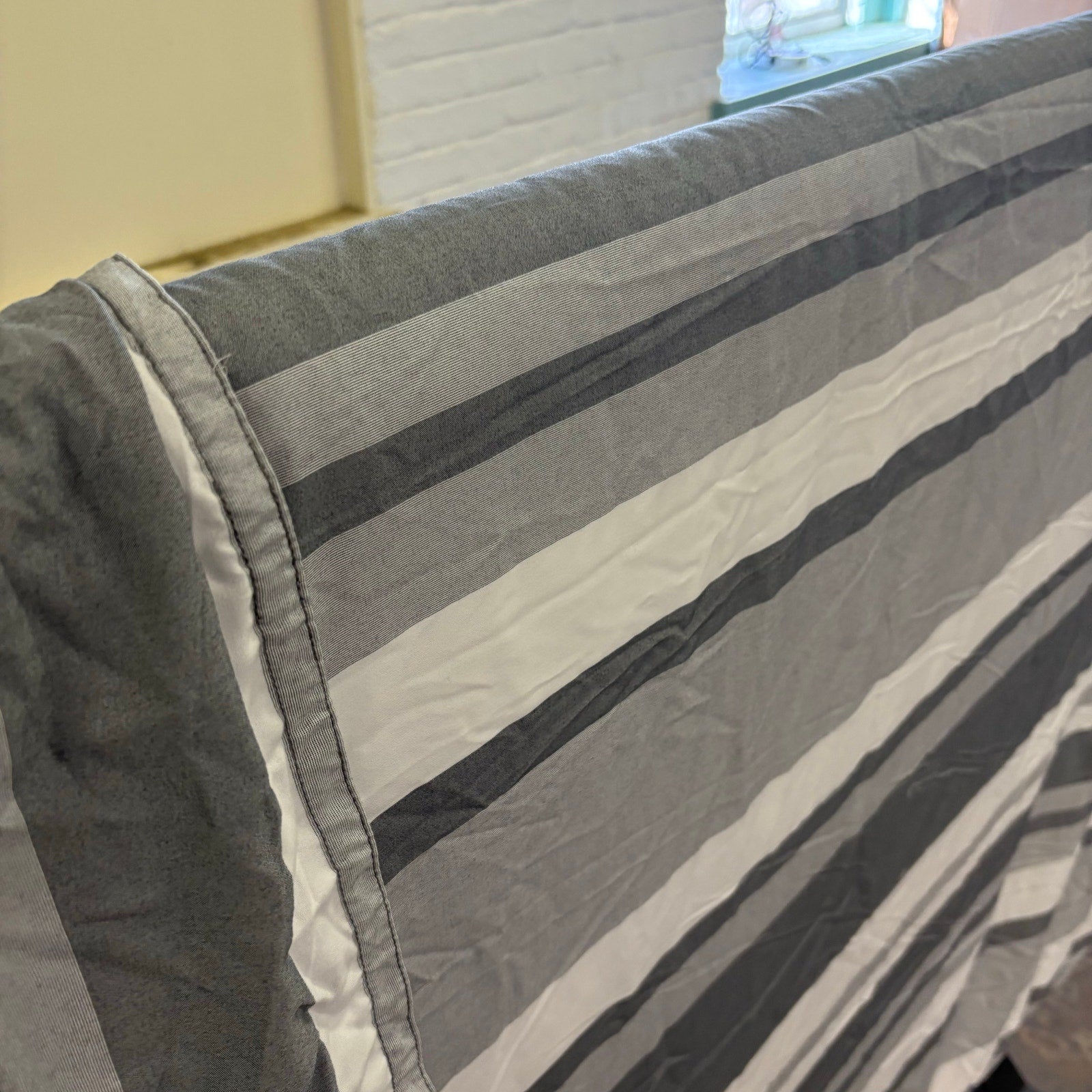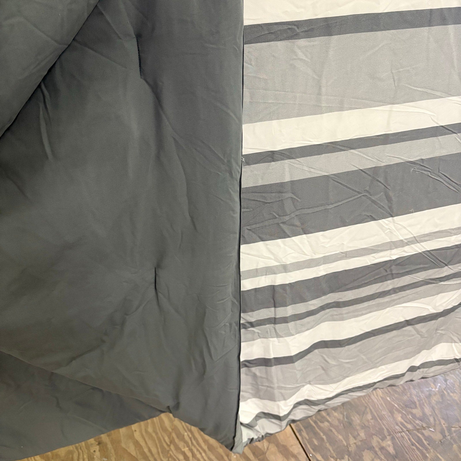 Thomasville Queen Comforter Set w 1 Pillow Sham, Dual Sided Gray/White Stripes