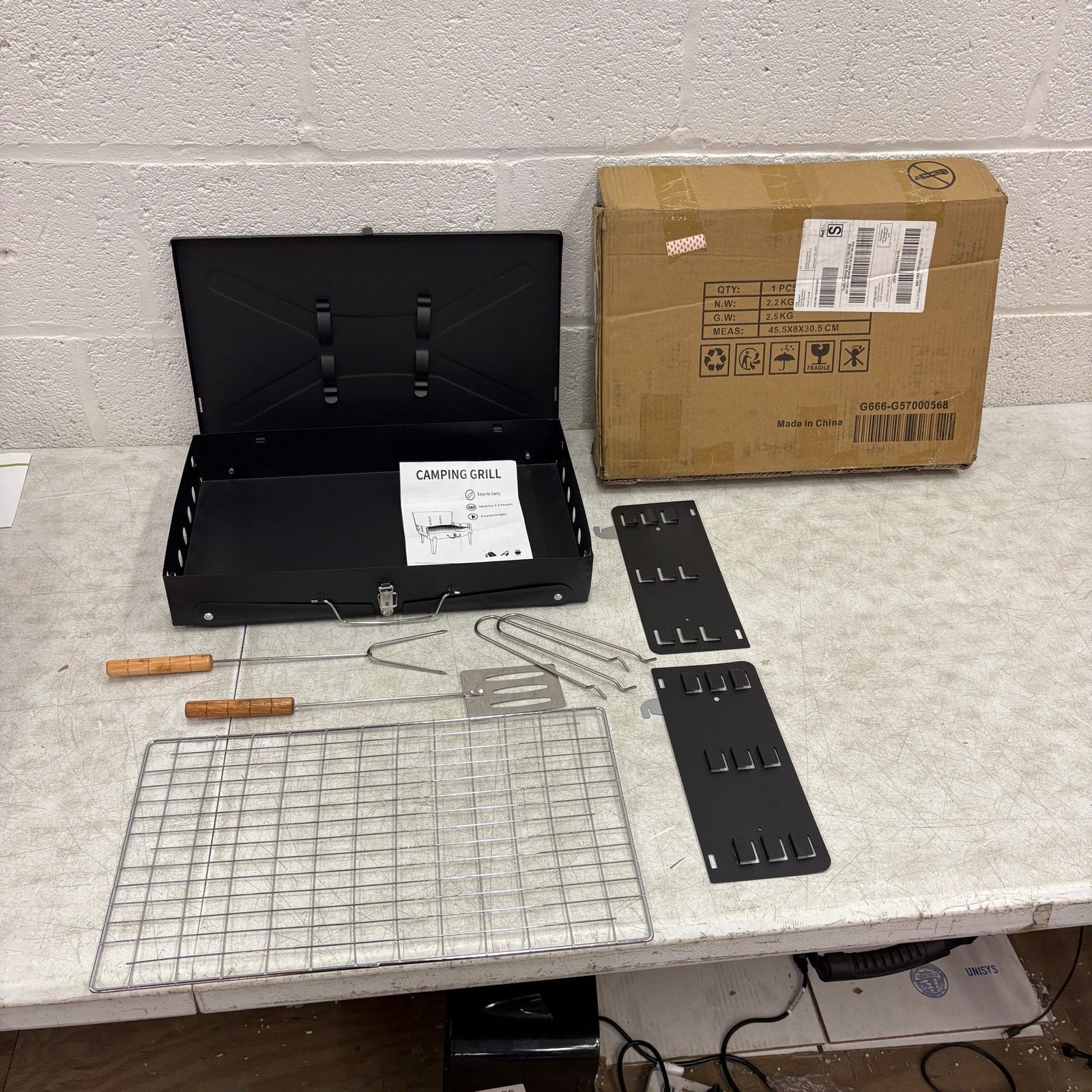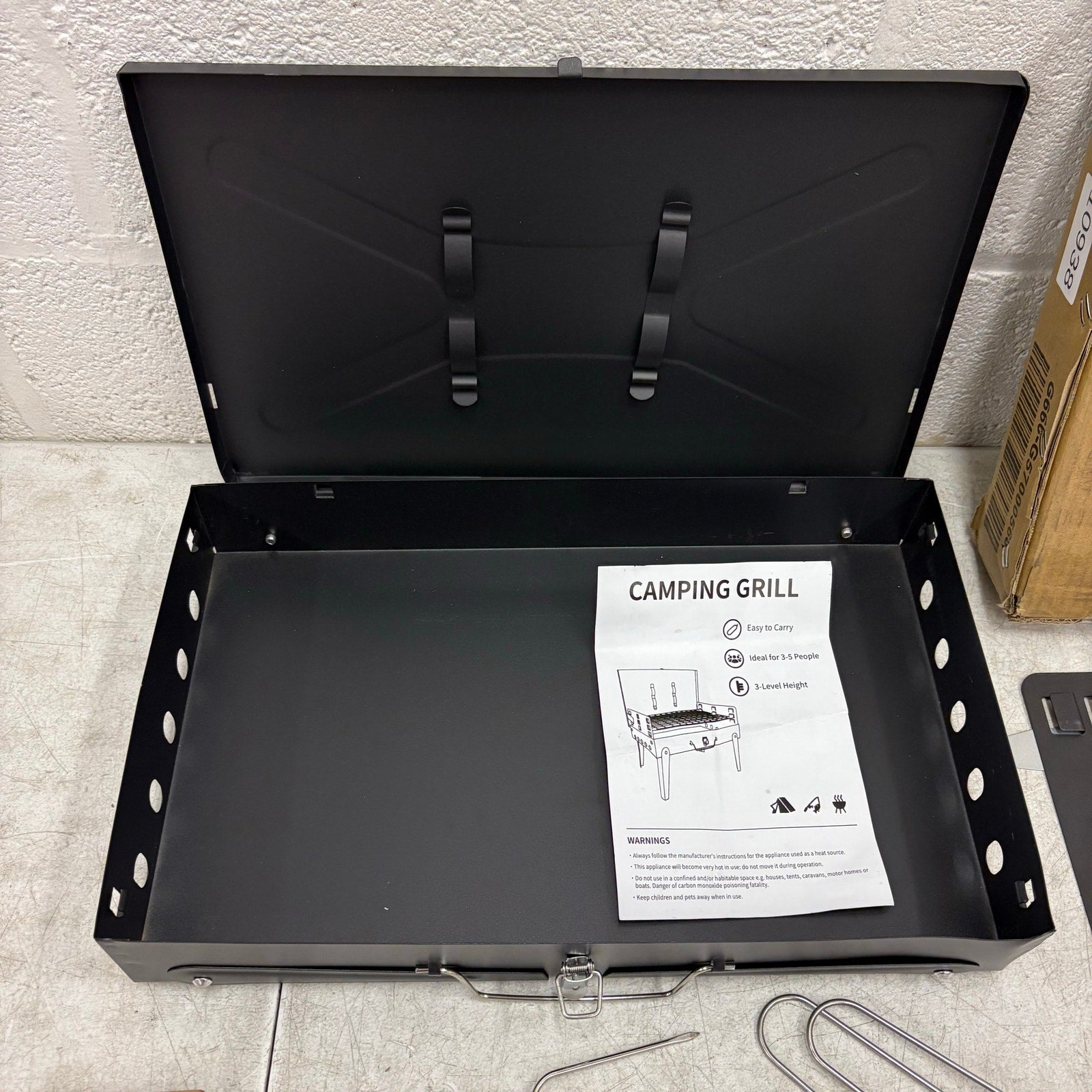 1. Upgraded Grills with Lid: The cover of the portable charcoal grill can be used to block the wind and dust when it is open. Meanwhile, our barbecue grill includes a wealth of grilling accessories such as forks and spades. The cover with a buckle design can also be used to fix barbecue tools.