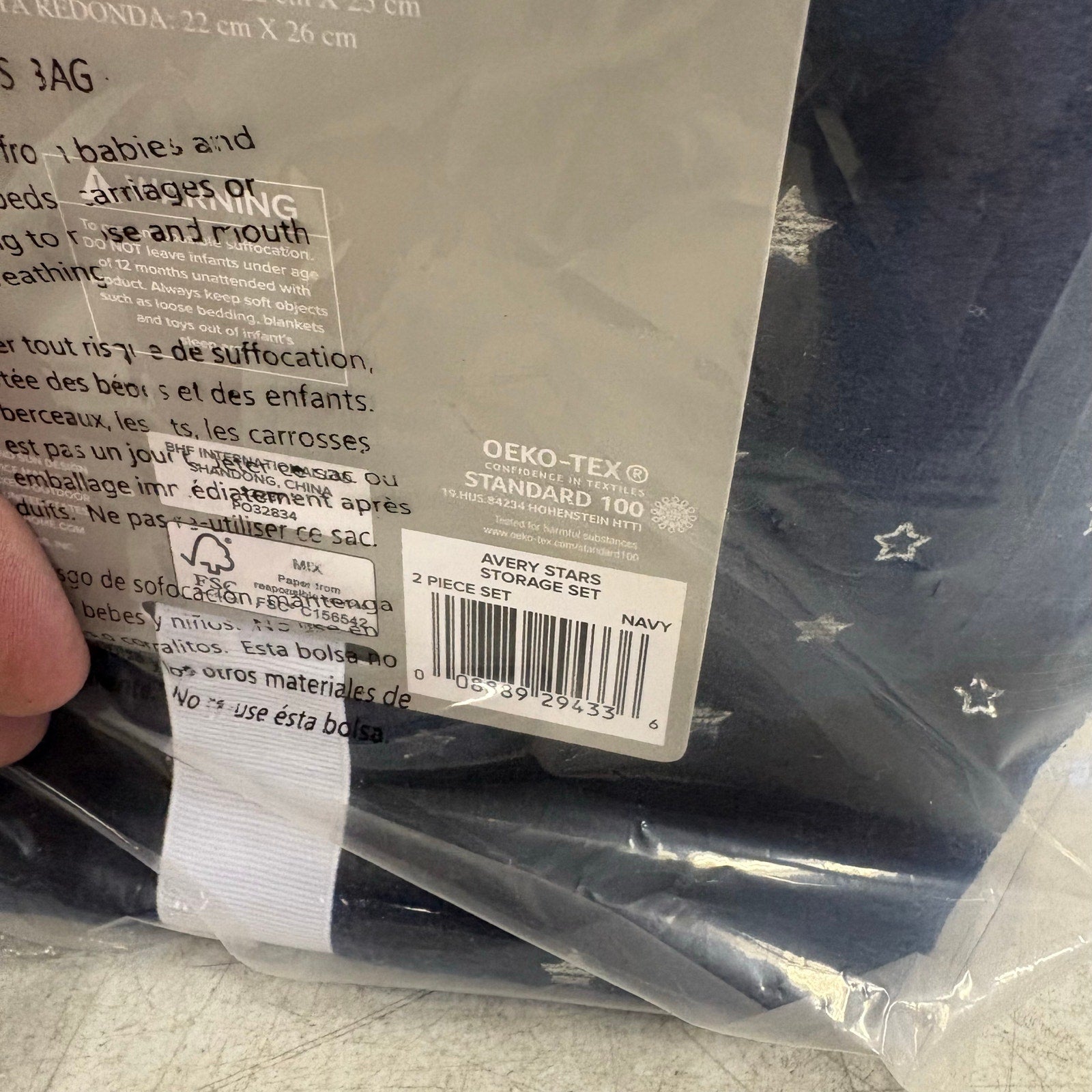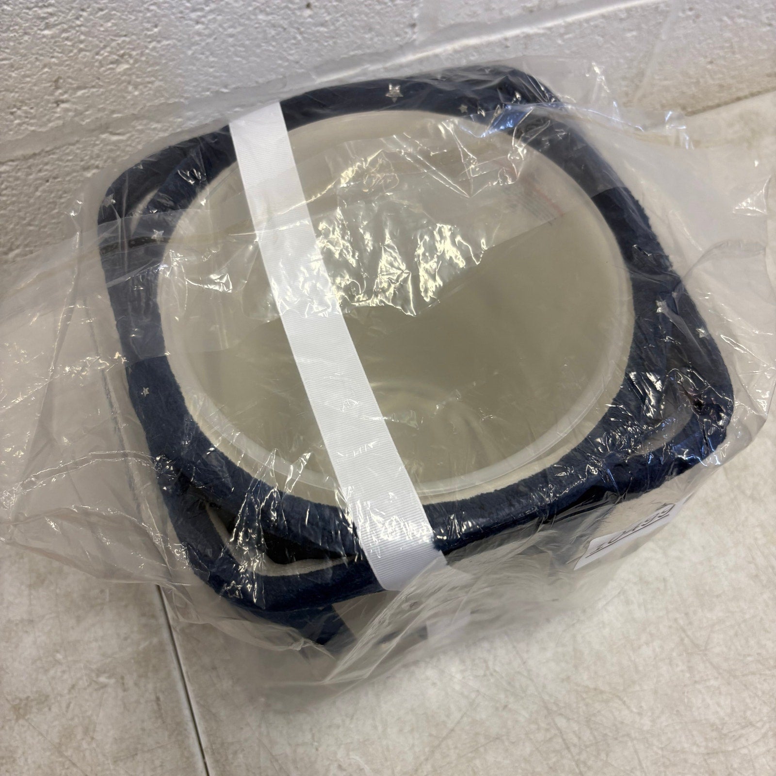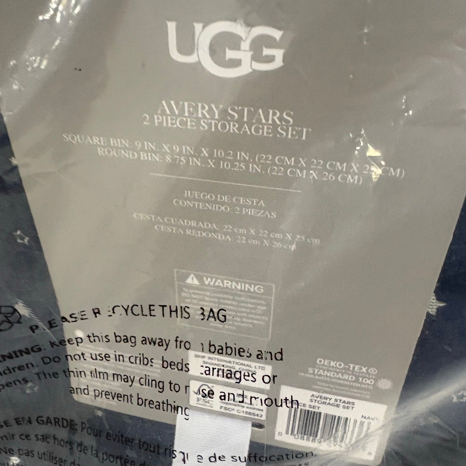 UGG Avery Stars 2 Piece Storage Square Bin & Round Waste Bin, Soft Fuzzy - Blue with silver stars