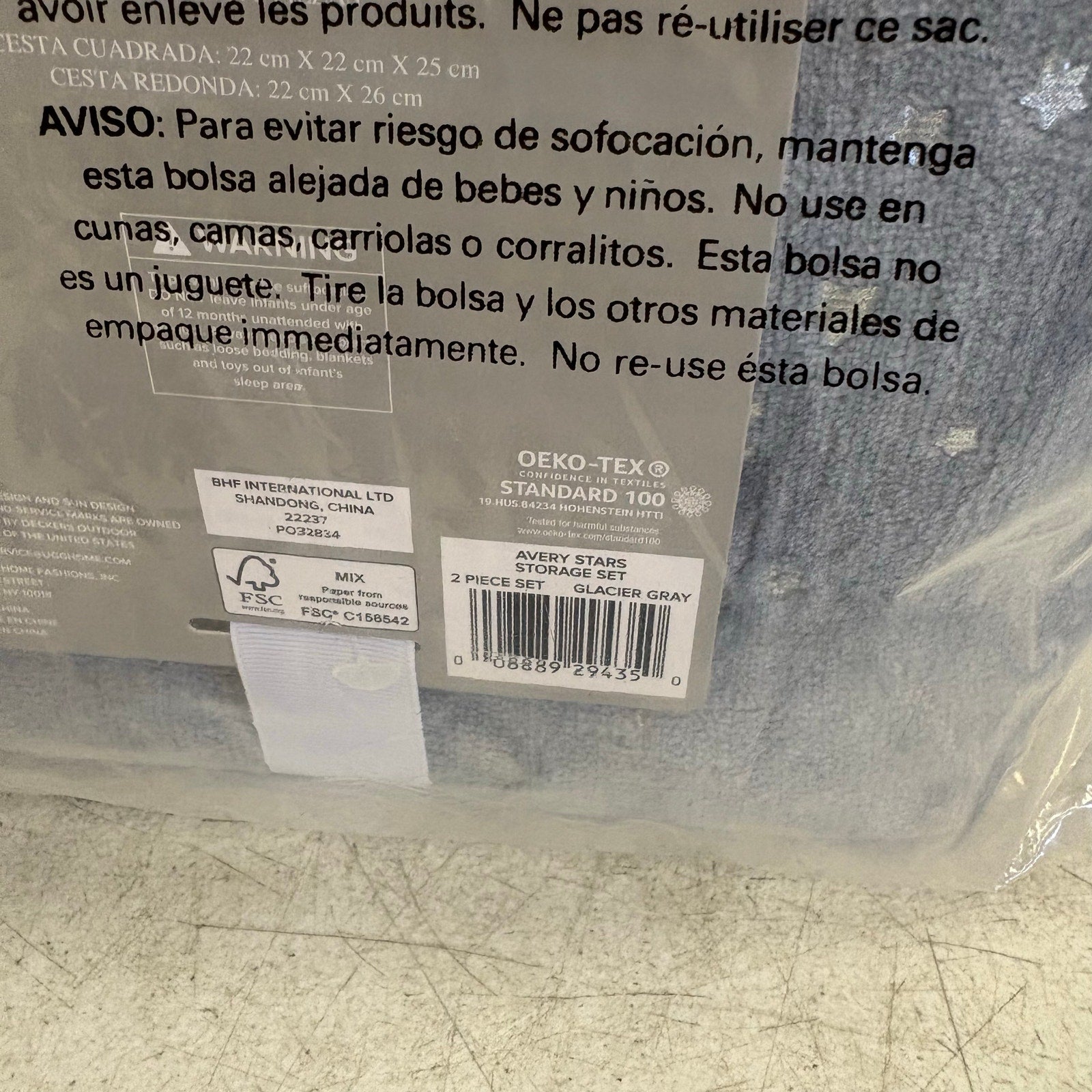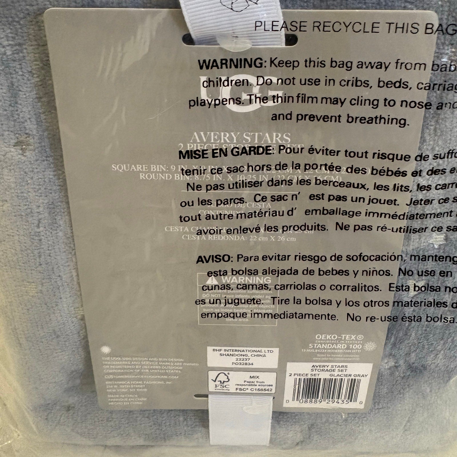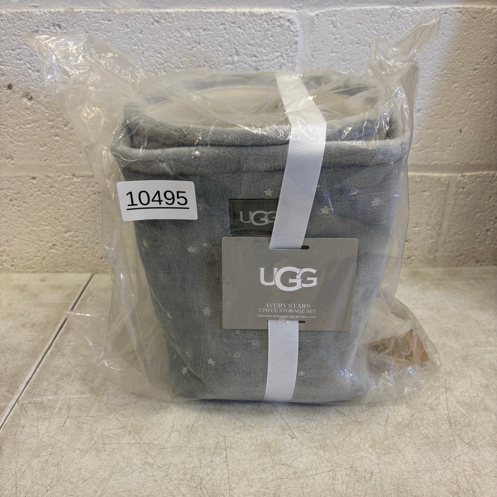 UGG Avery Stars 2-Piece Storage Square Bin & Round Waste Bin, Soft Fuzzy - Gray