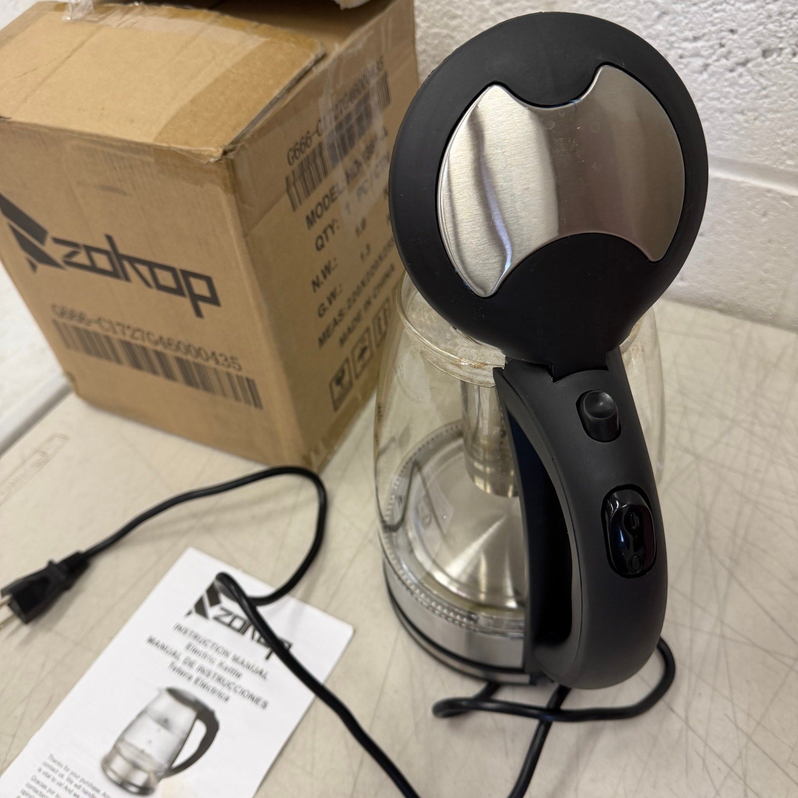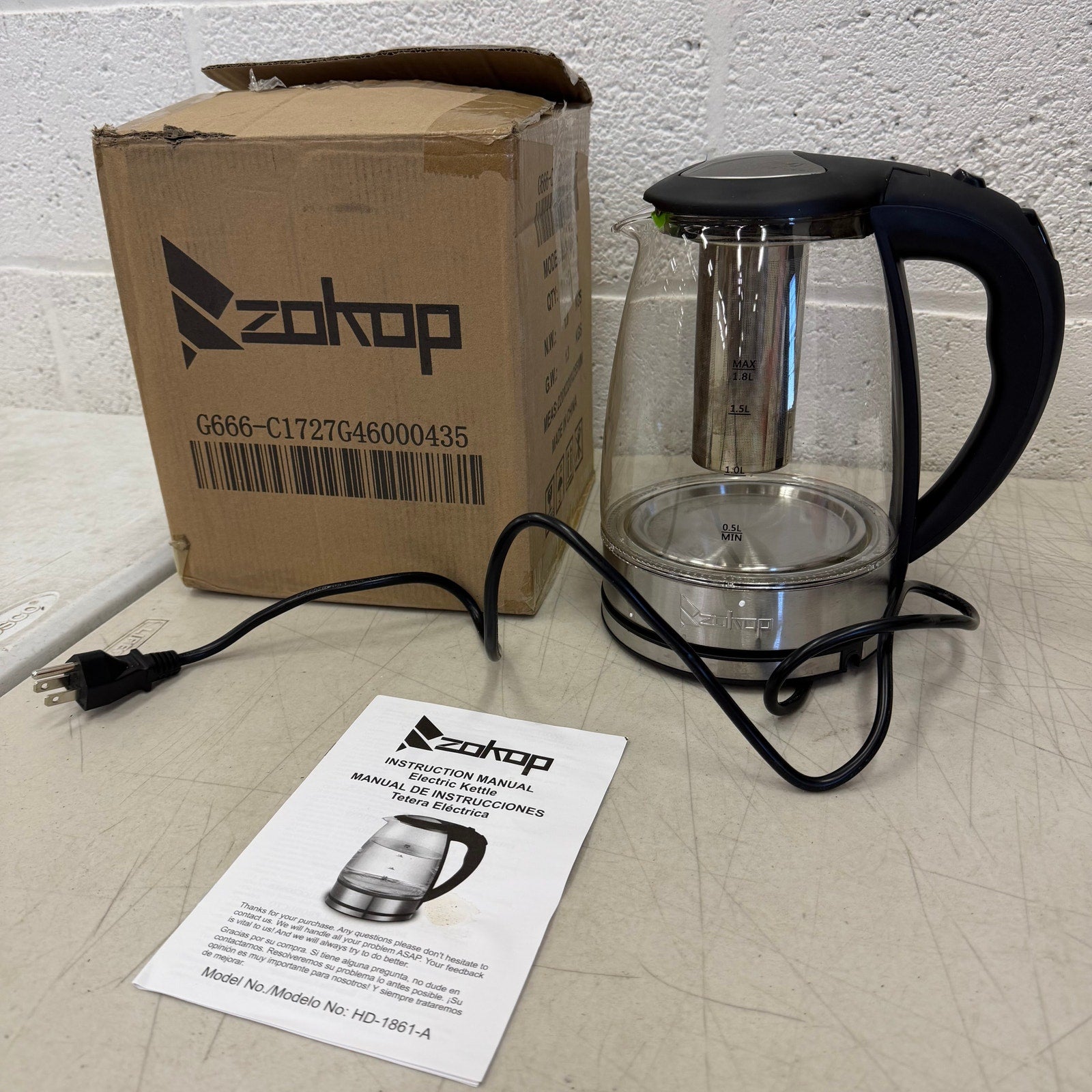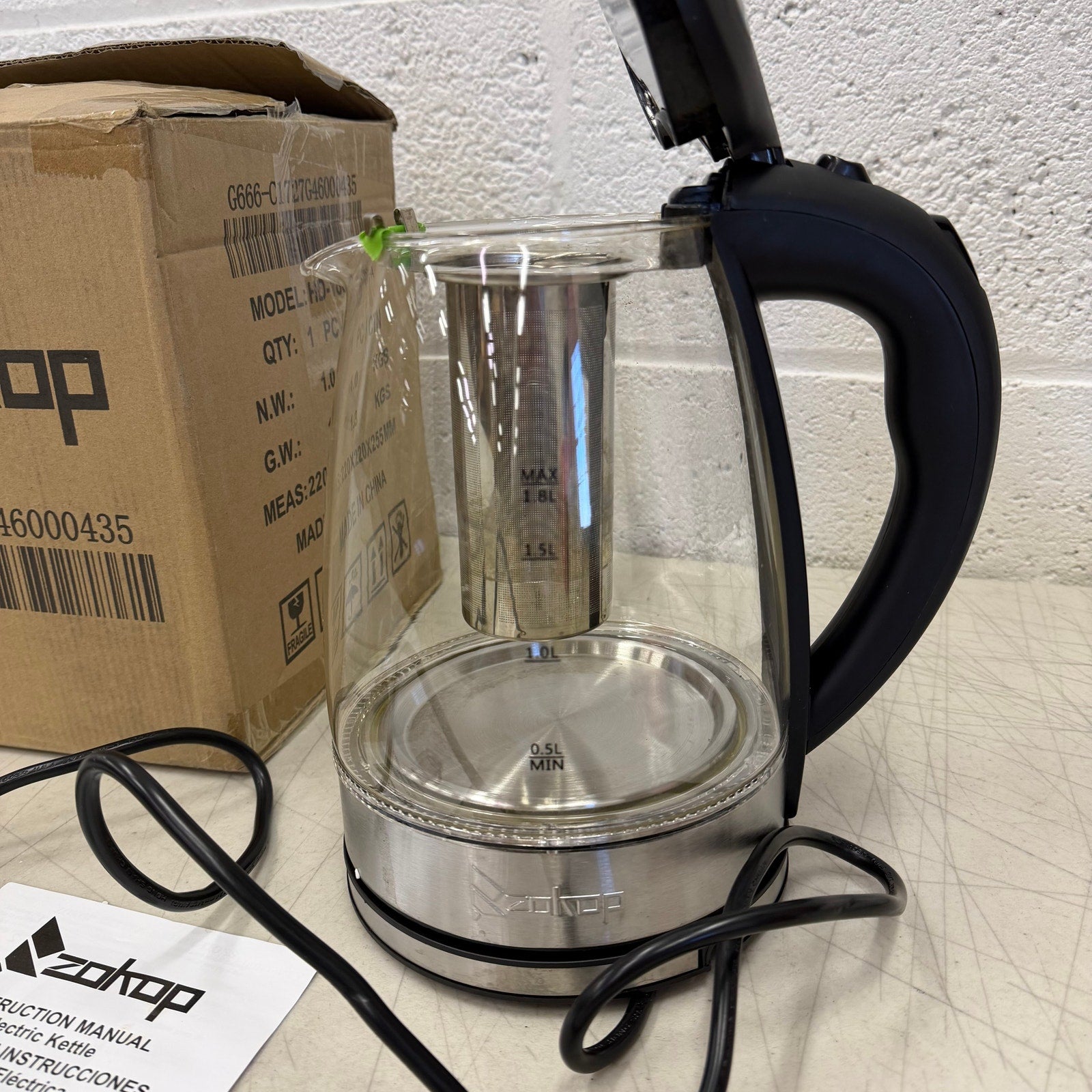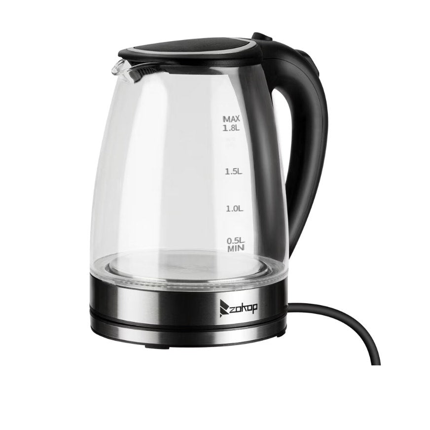 ZOKOP Corded Electric Glass Kettle, 1.8L Fast Boiling, Auto Shut-Off, 1500W
