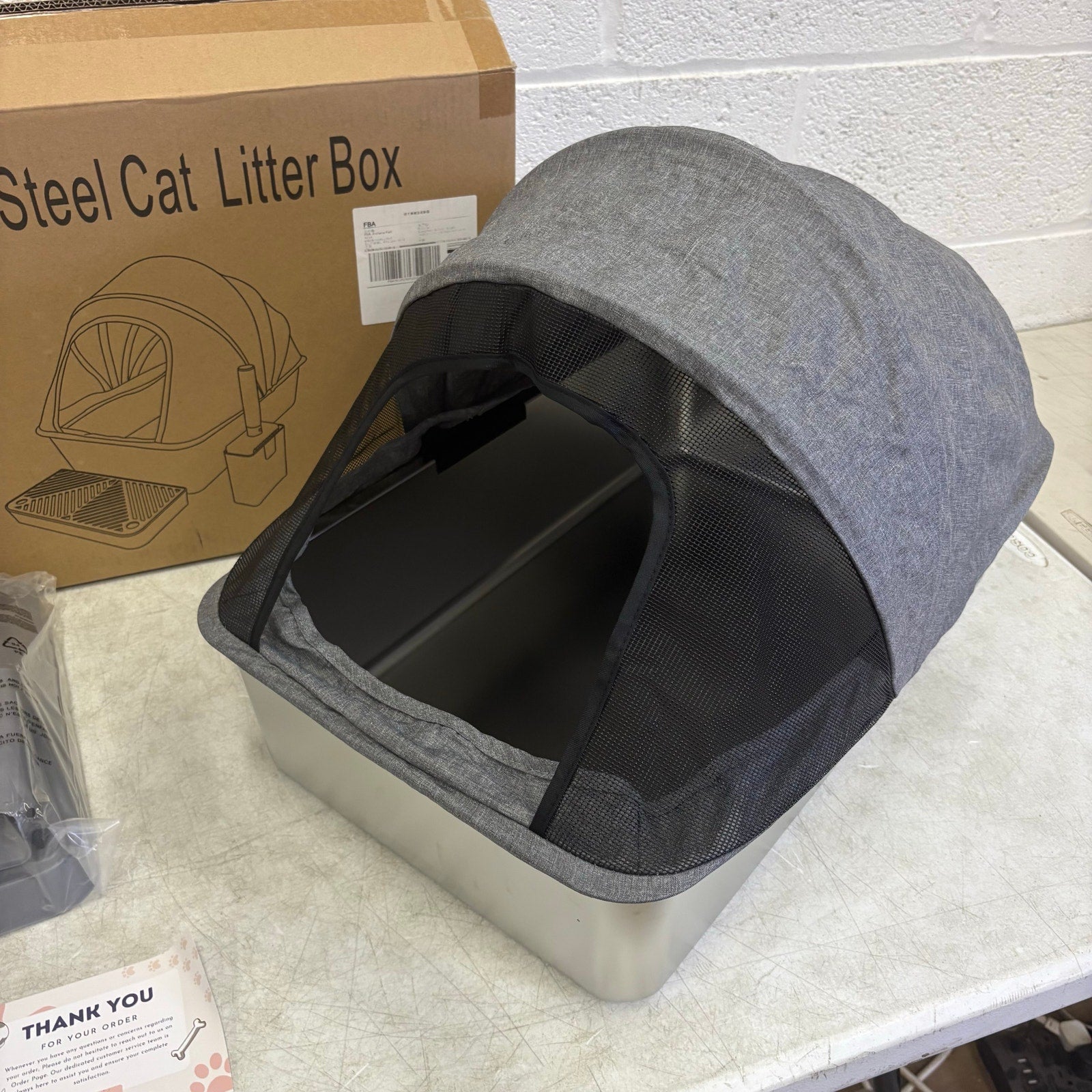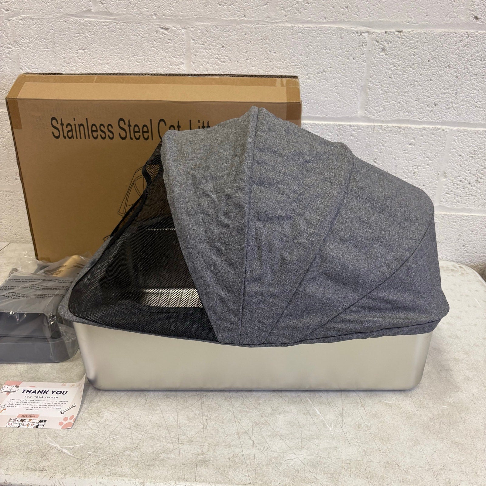 Pacifik Angels Stainless Steel Cat Litter Box Anti Splash Fabric & Scoop - Gray
