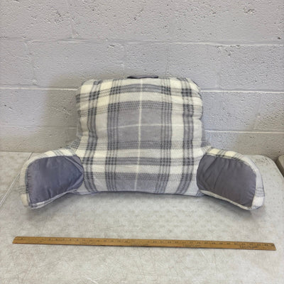 Plush Backrest Pillow, 34"W x 18"H Reading Pillow Soft - Gray Plaid Design