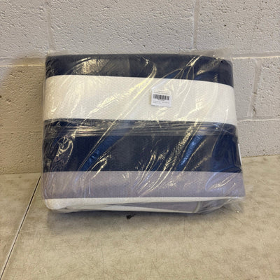 Outdoor Area Rug 5x8ft Horizontal Striped Large Patio Mat, Blue White Gray Lines