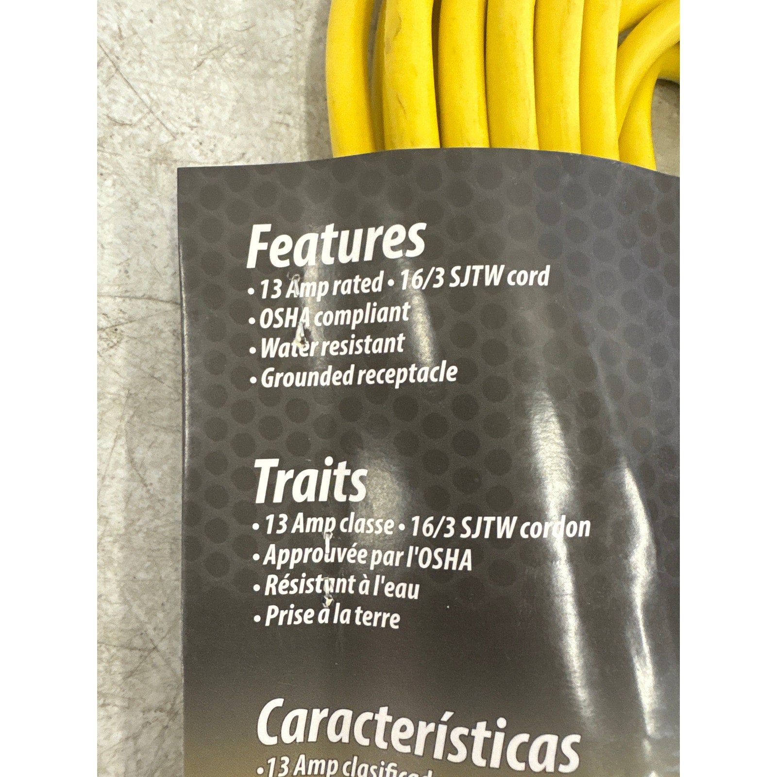 Bayco 50' Single-Tap 16/3 Extension Cord, OSHA Compliant, Water Resistant SL-750