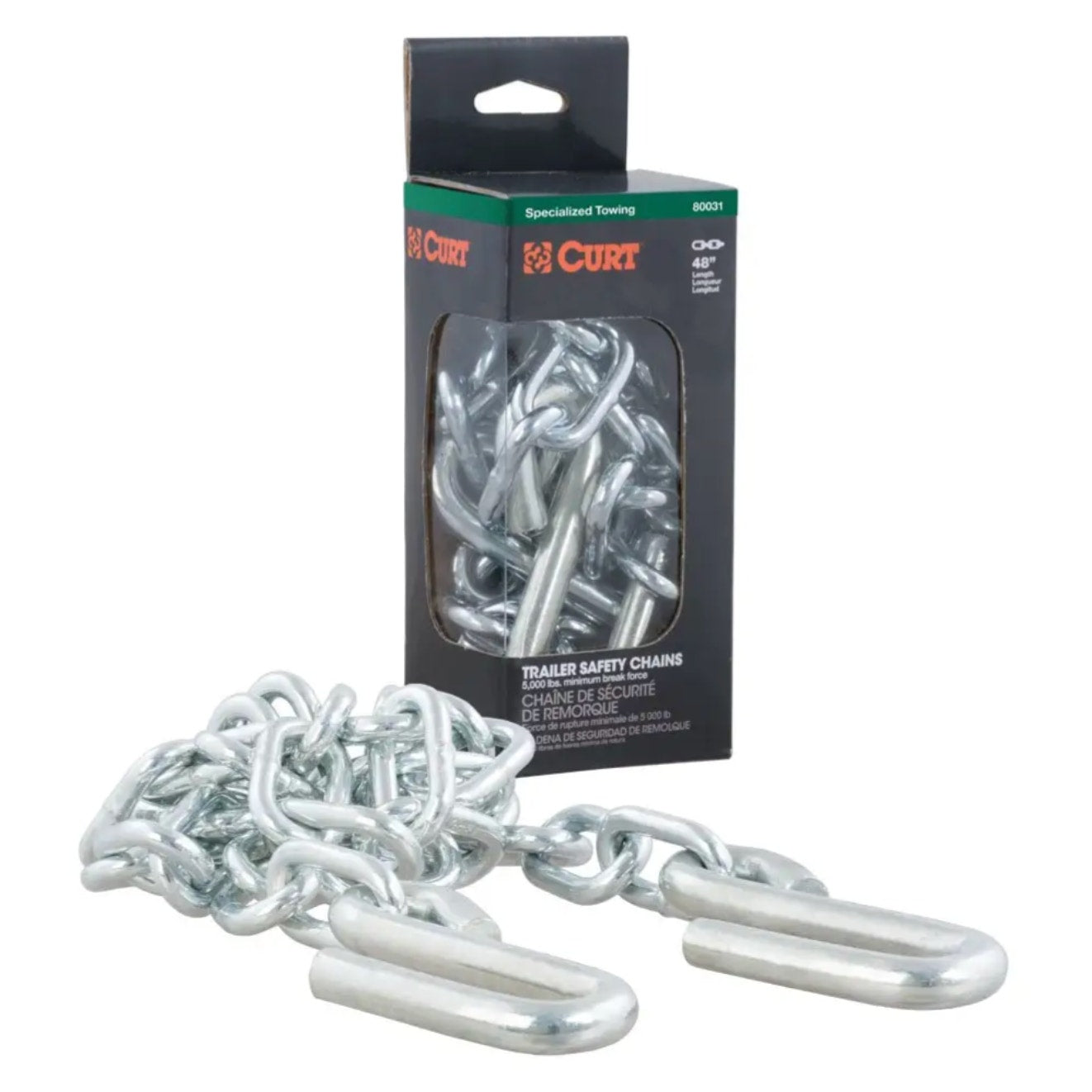 CURT 48" Safety Chain with 2 S-Hooks (5,000 lbs, Clear Zinc, Packaged)
