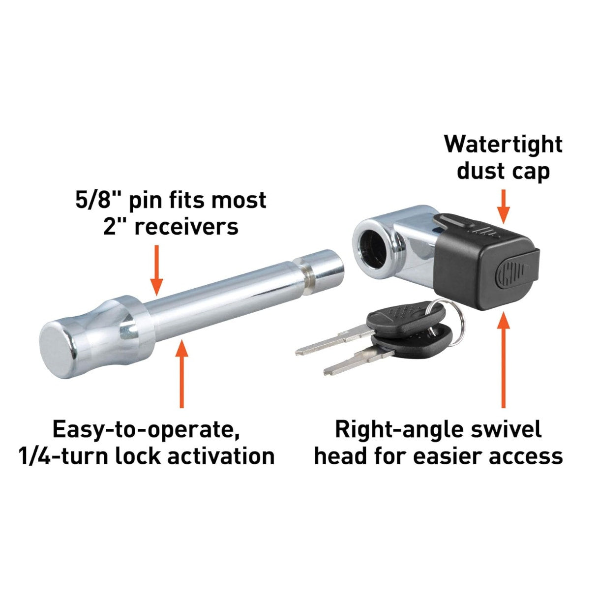 CURT Right-Angle Trailer Hitch Lock, 5/8-Inch Pin Diameter, Fits 2-Inch Receiver