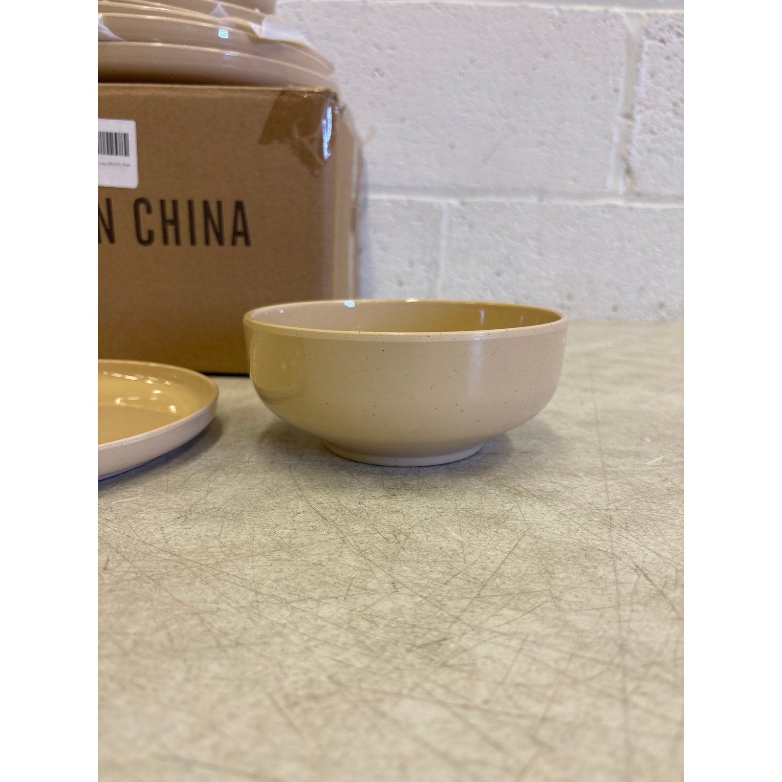 Melamine Dinnerware Sets, 12Pcs Dishes Set for 4, Plates and Bowls Sets - Tan