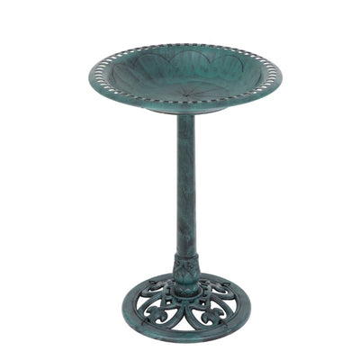 Vingli Vintage Bird Bath Antique Green Outdoor Garden Backyard Decor, 28"H x 20W