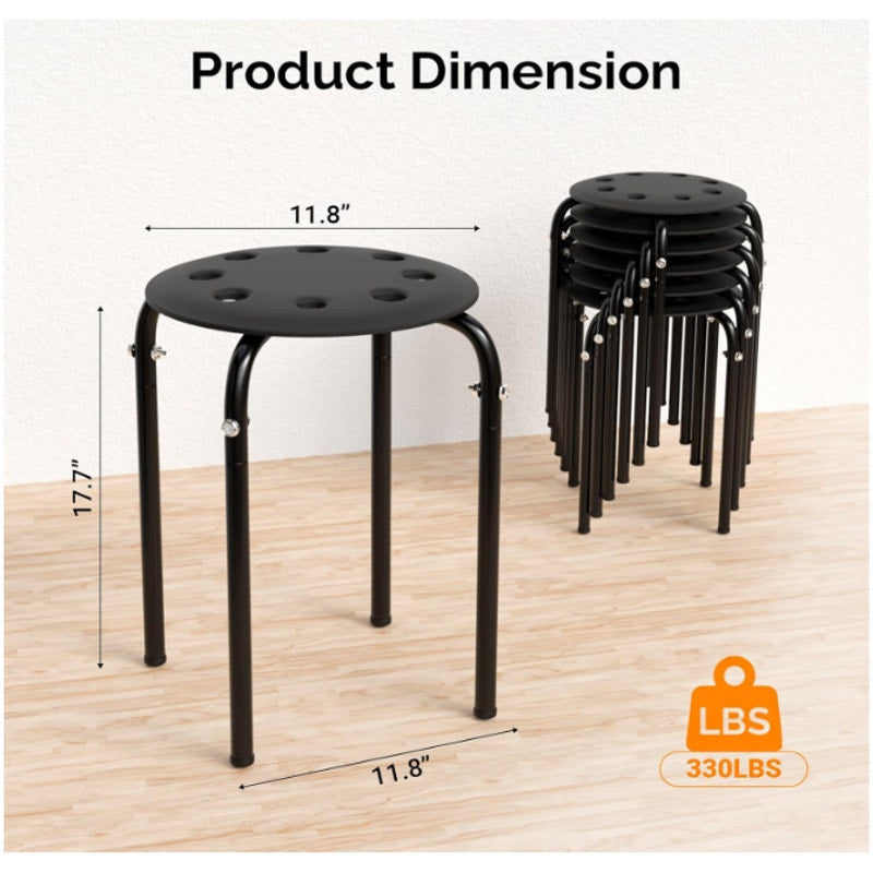 PACK-OF-6 Plastic Stackable Stools 17.7" Portable Stacking Chairs, Black MISSING HARDWARE