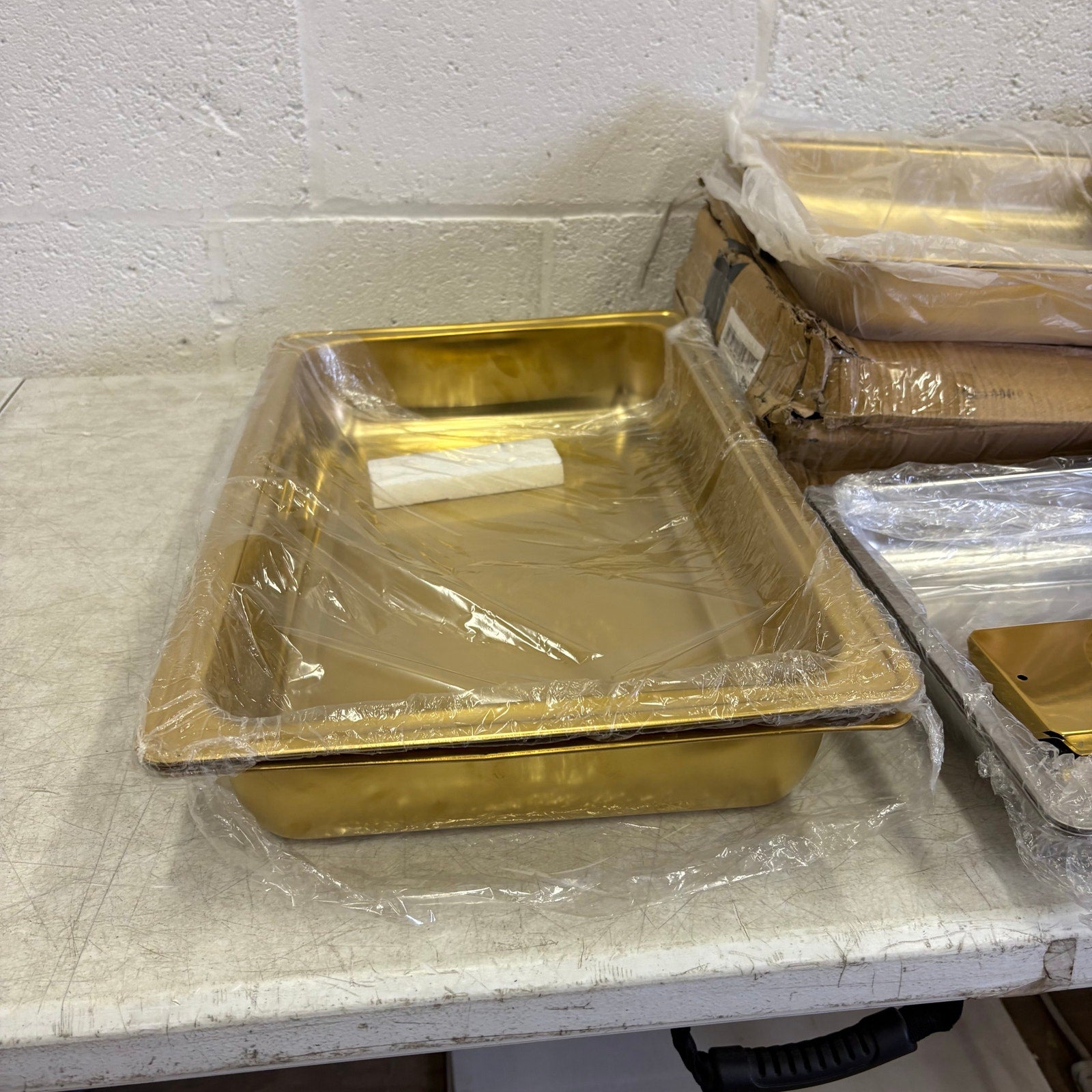 SET-OF-2 ROVSUN 9 QT Rectangle Gold Chafing Dish Buffet Set w Full Size Pans READ