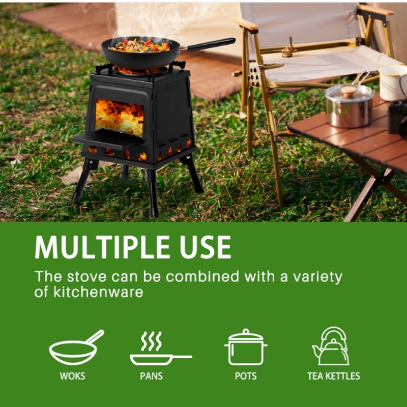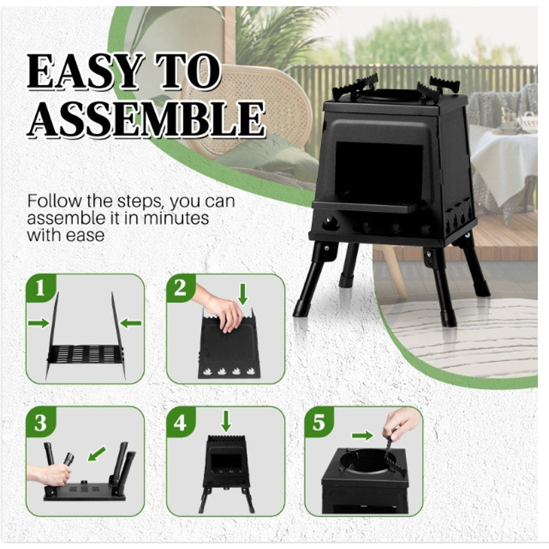10.63" Camping Wood Stove Folding Lightweight Alloy Steel Wood Burning Portable