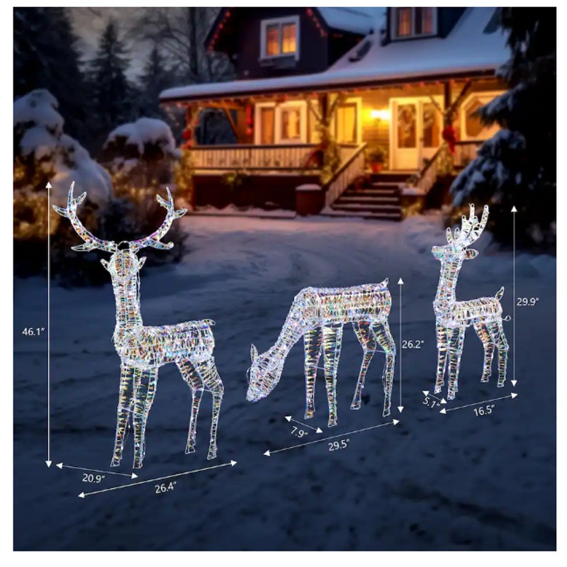 3-PCS Christmas Reindeer Family 3.8FT Set Weather Proof Deer with Lights