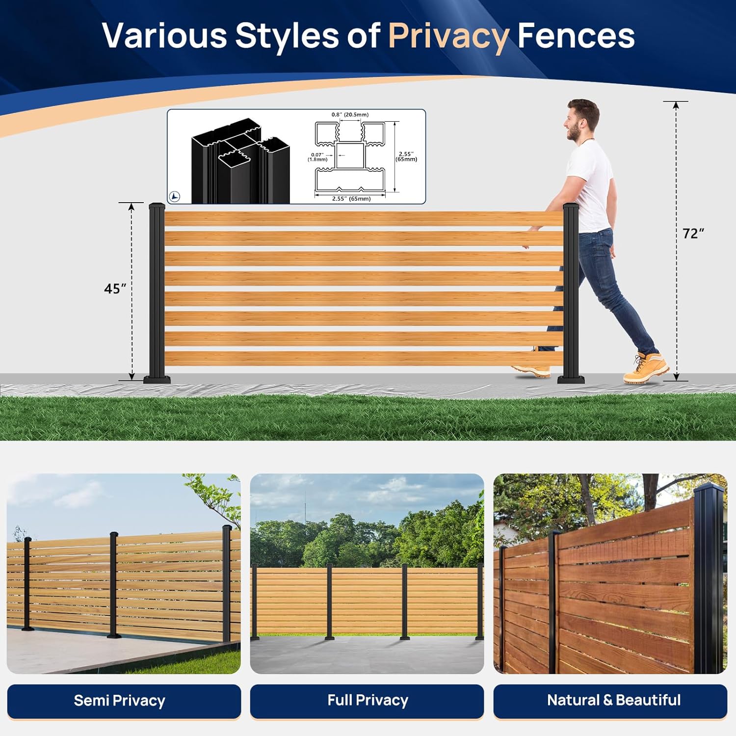 Post size: 45" H x 2.56" L × 2.56" W