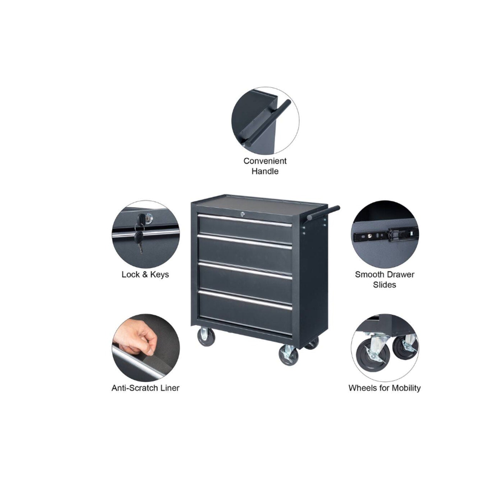 4-Drawer Rolling Tool Chest Tool Storage Cabinet Tool Trolley Organizer w Lock