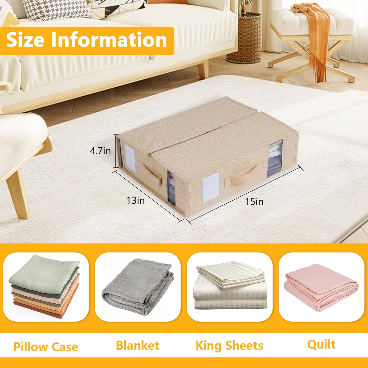 4 PC Bedroom Storage Organizers w Handles for In Closet or Under Bed, Tan