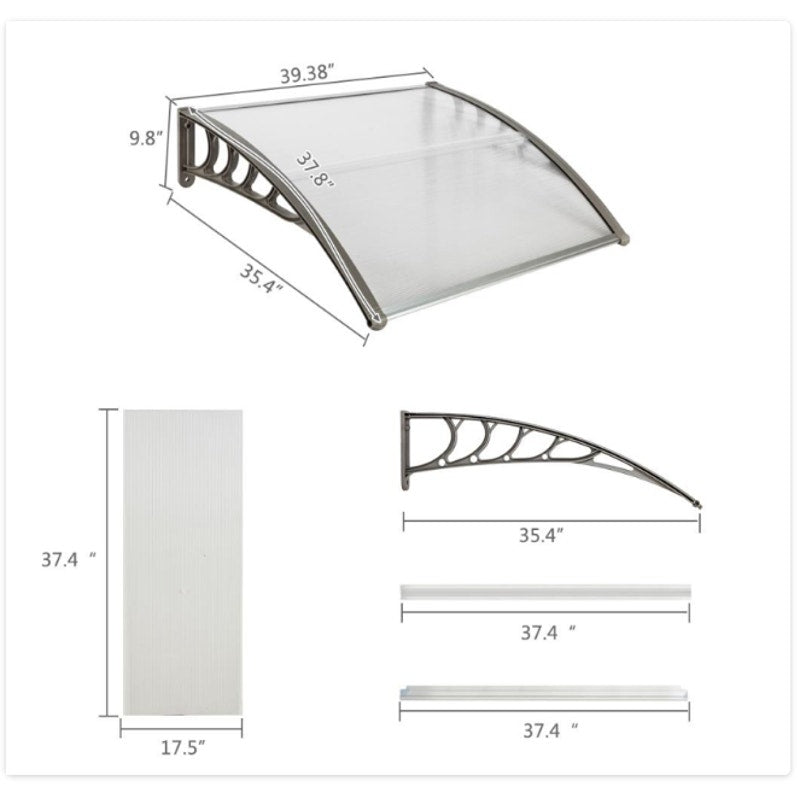 40" x 40" Window Awning Door Canopy Exterior, Polycarbonate GRAY, MISSING SCREWS