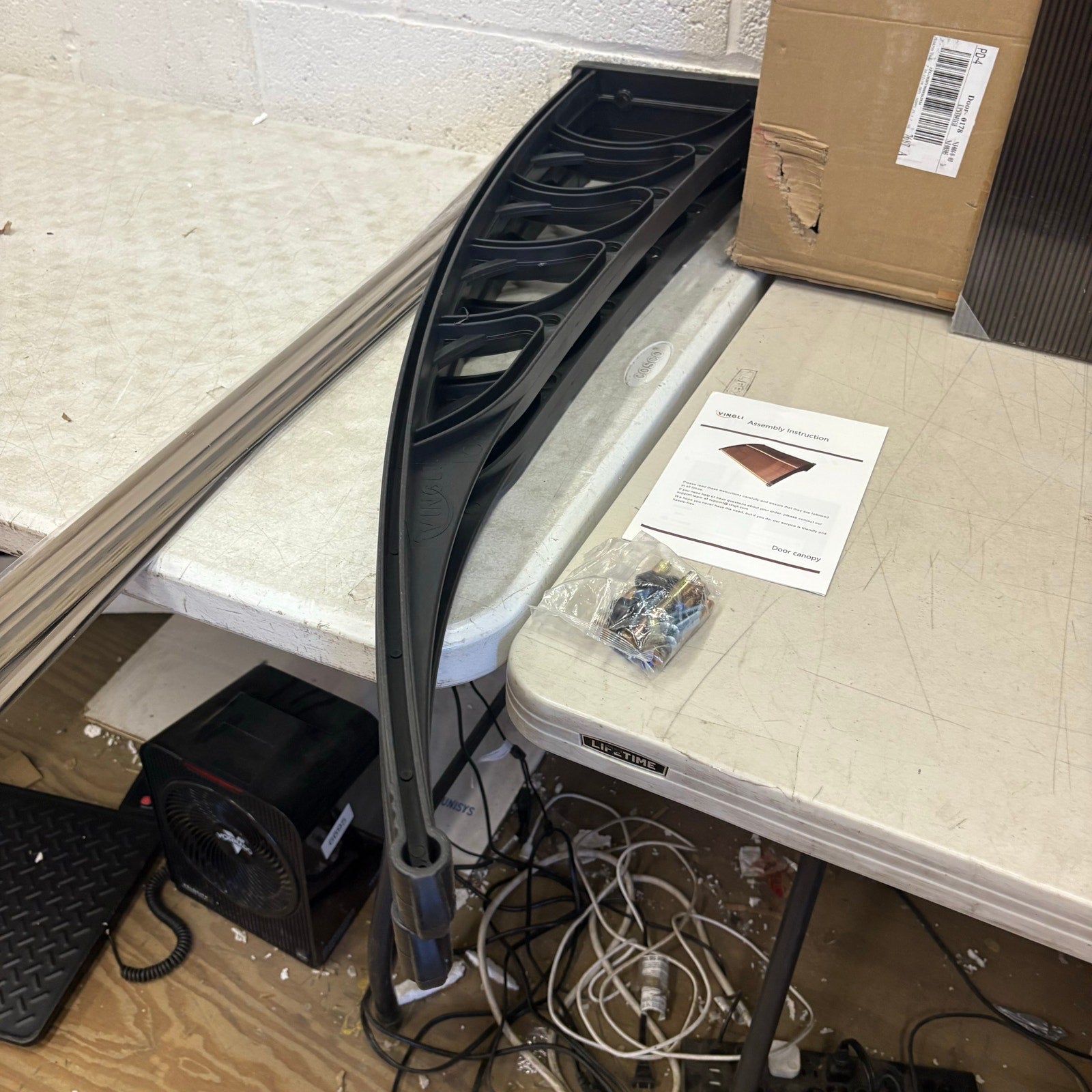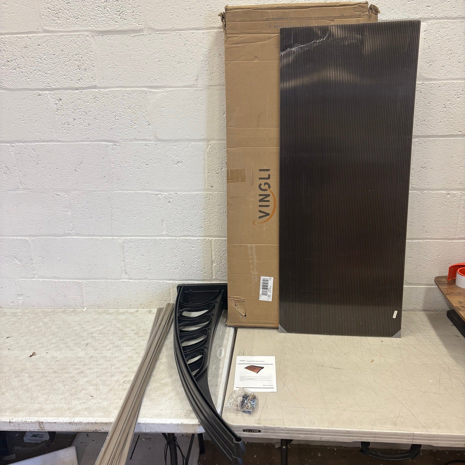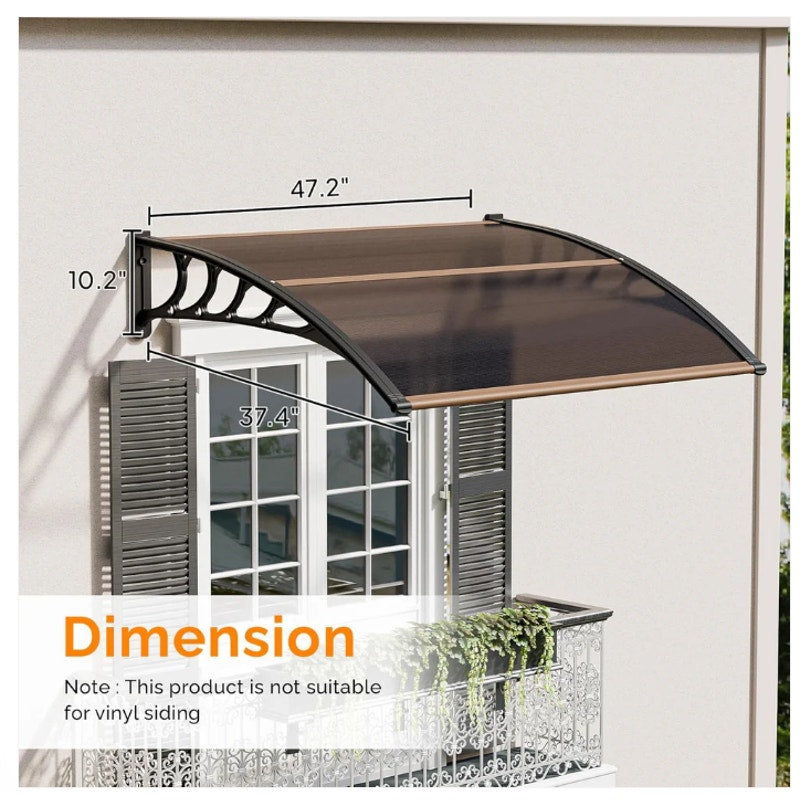 40" x 48" Polycarbonate Brown Door Canopy – 2-Panel Fixed Window Awning - Black