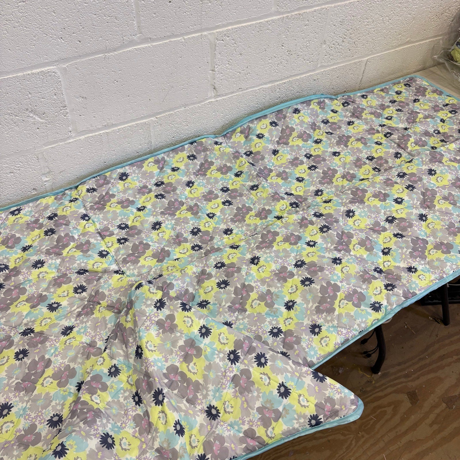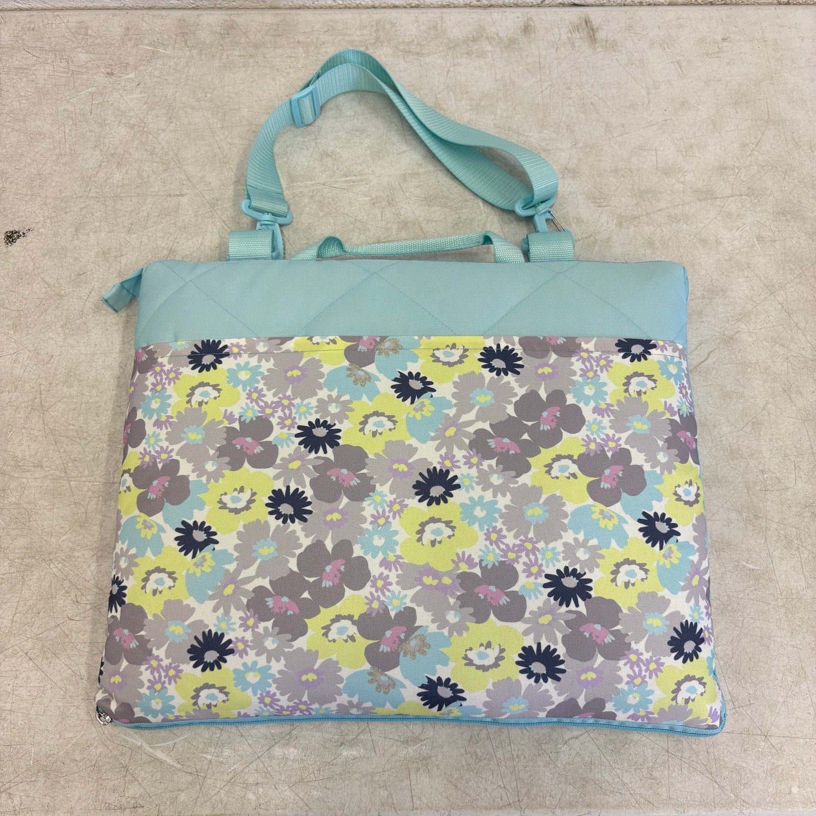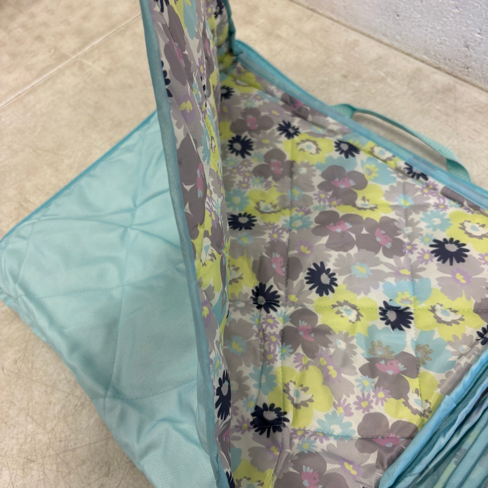 58"x70" Stadium Blanket Folds Easy to Carry Bag w Shoulder Strap, Blue Flowers