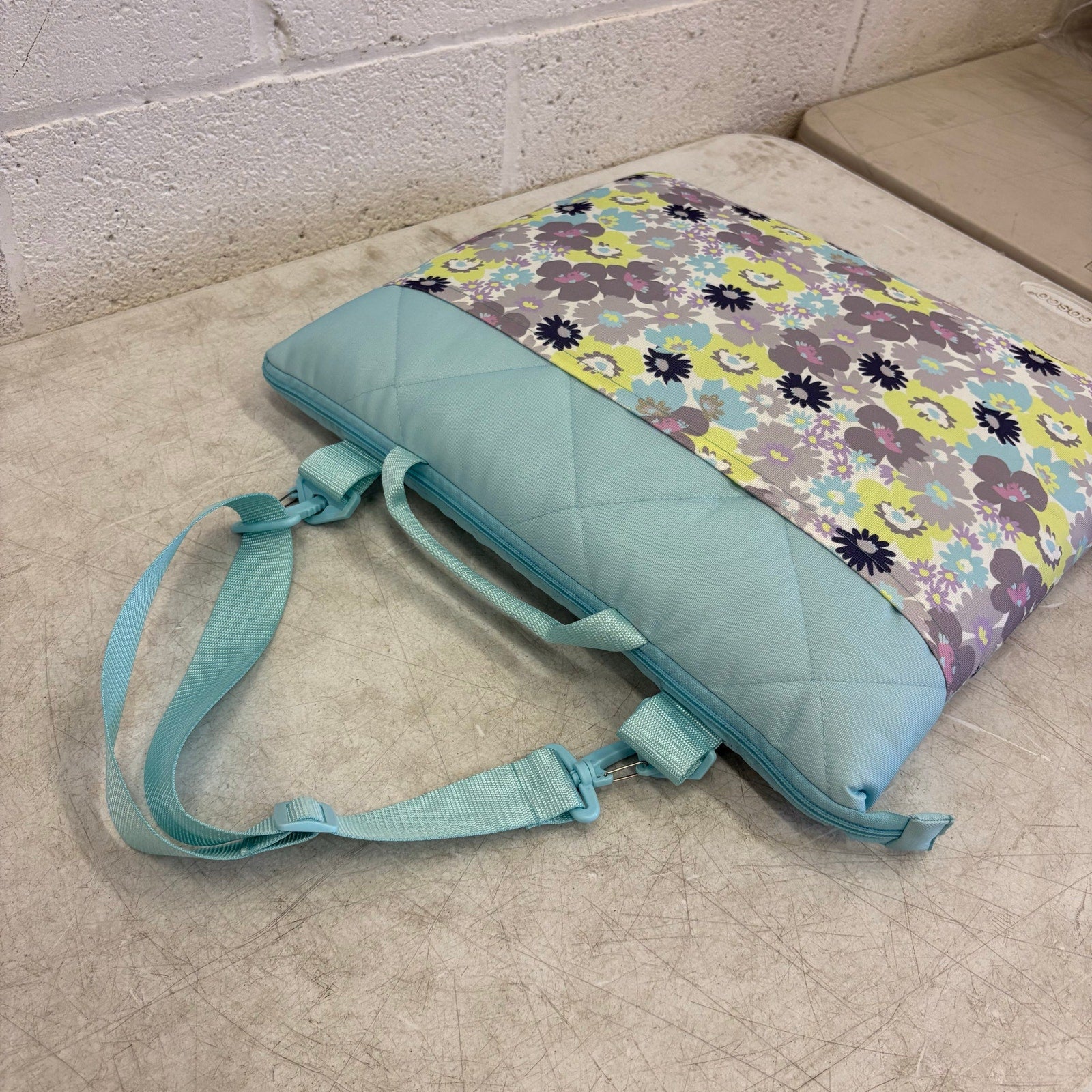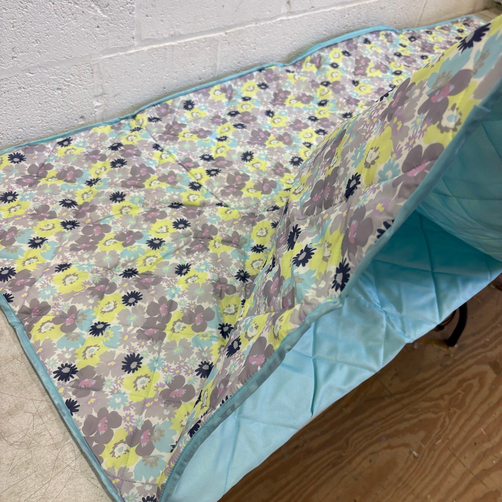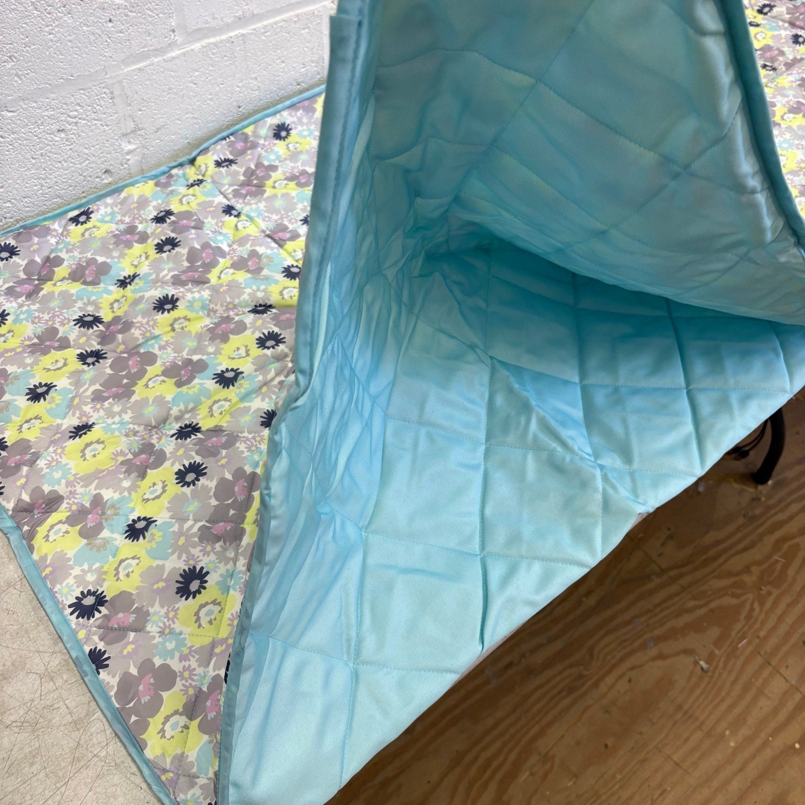 58"x70" Stadium Blanket Folds Easy to Carry Bag w Shoulder Strap, Blue Flowers
