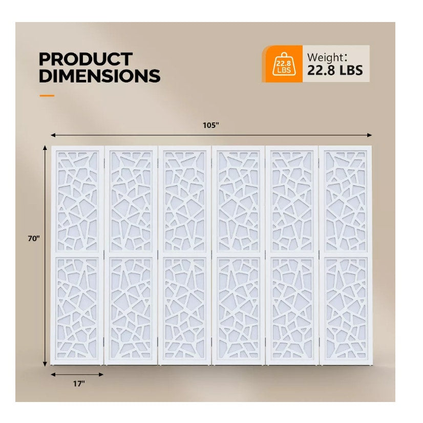 6-Panel Room Divider Non-Woven Fabric Privacy Screen Partition, Damaged