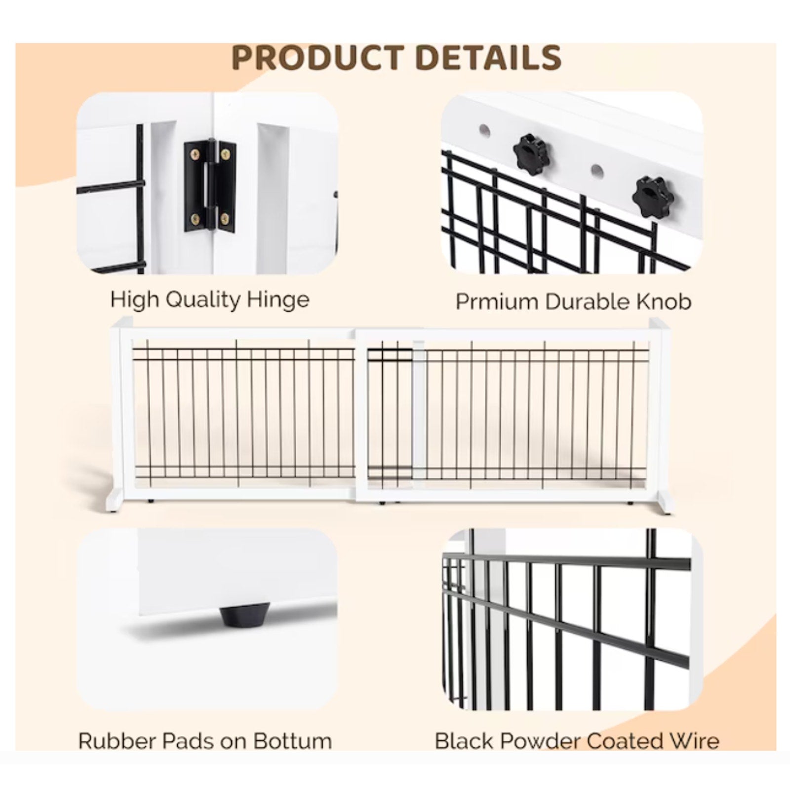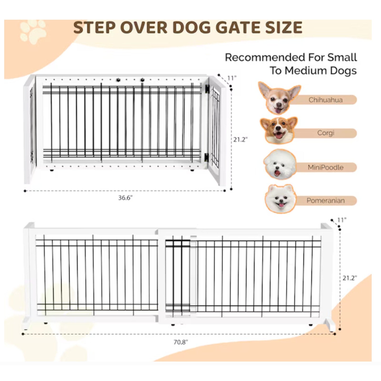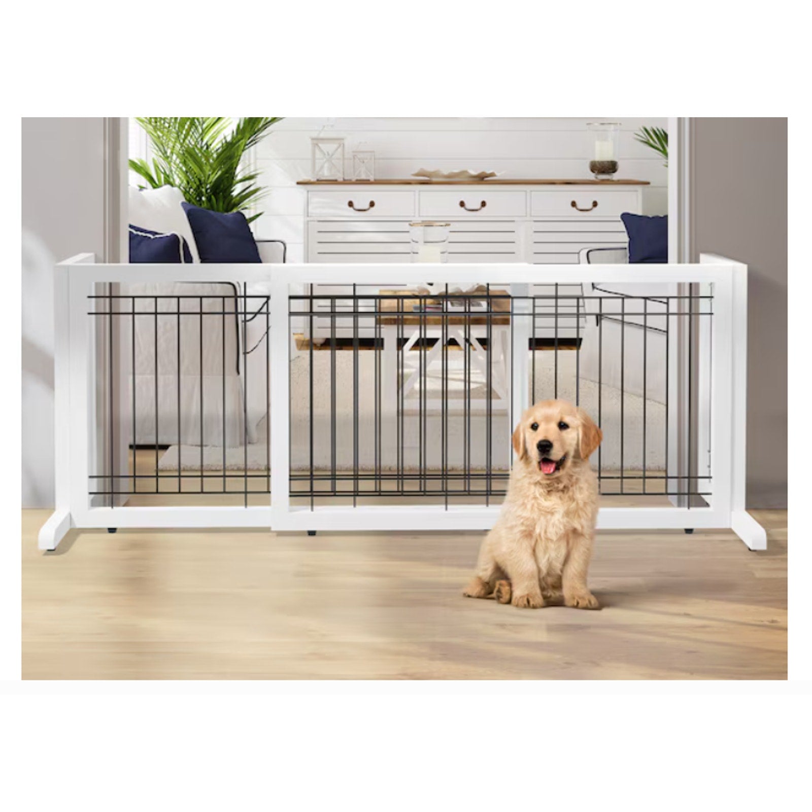 Adjustable Free Standing Dog gate for House Doorways Stairs White 71Wx18Dx21H