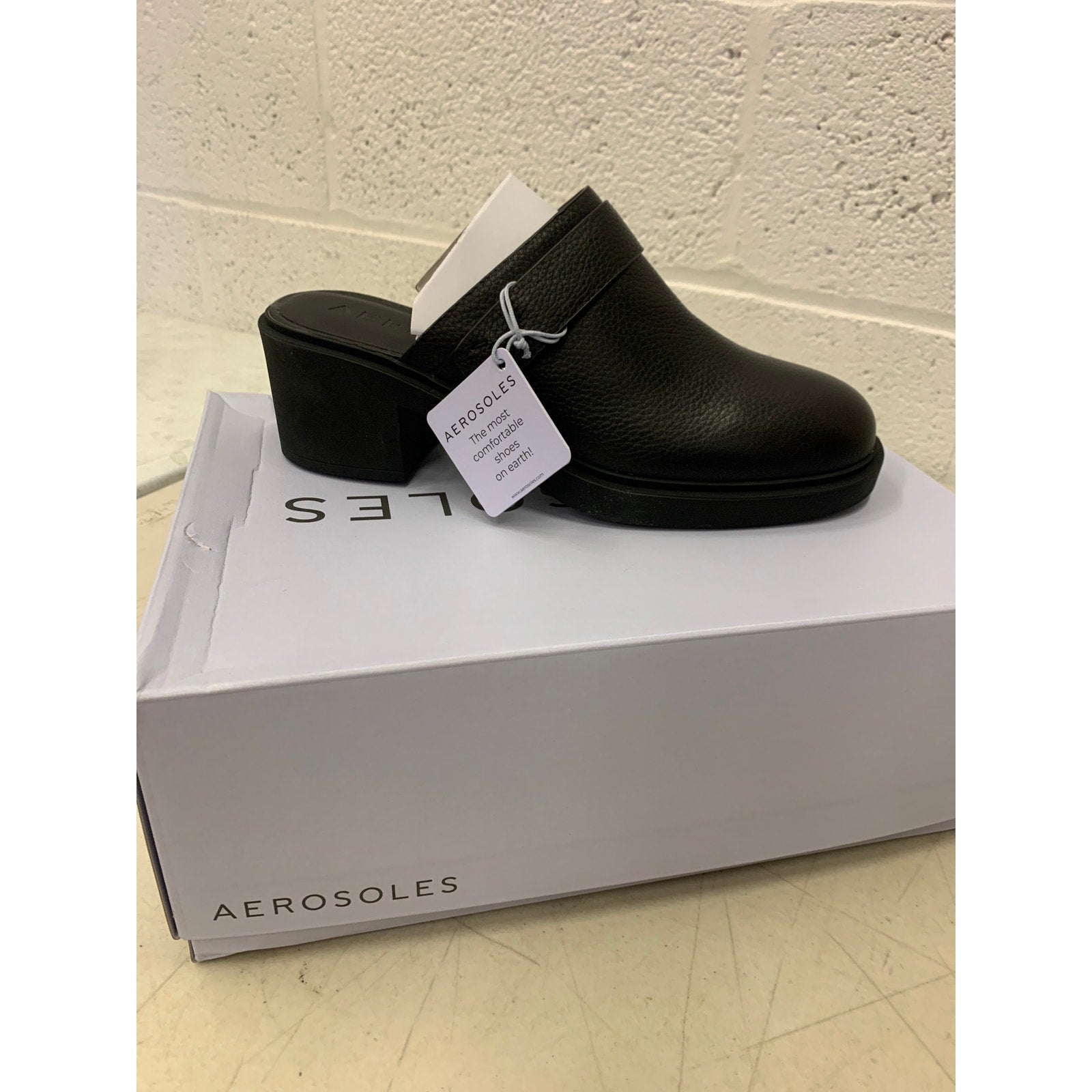Aerosoles Grunda Comfortable Women's Molded Block Heel Mule Black Leather 9.5