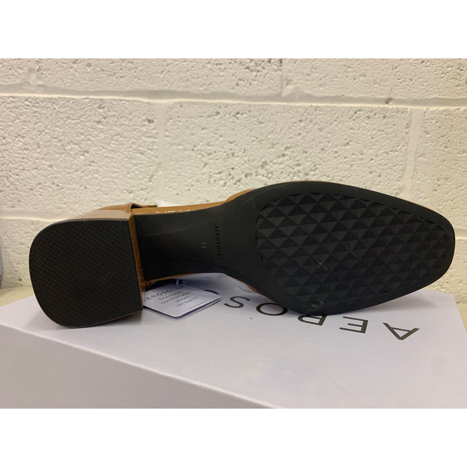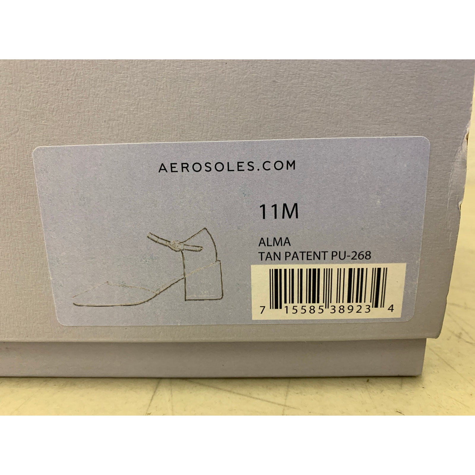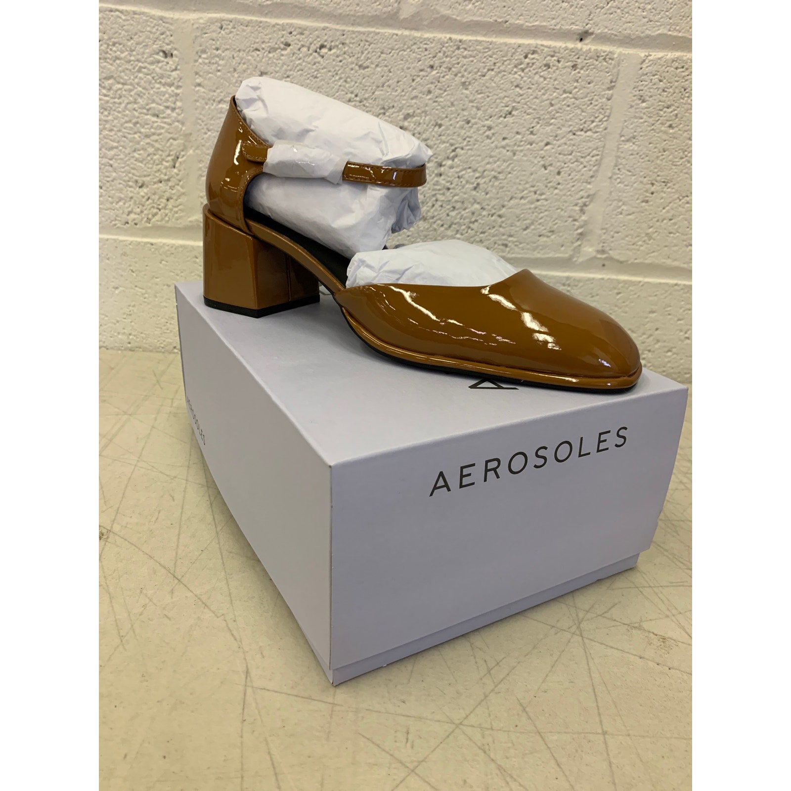 Aerosoles Women's Ankle Strap Two Piece Block Heel Pump Brown Faux Leather Sz 11