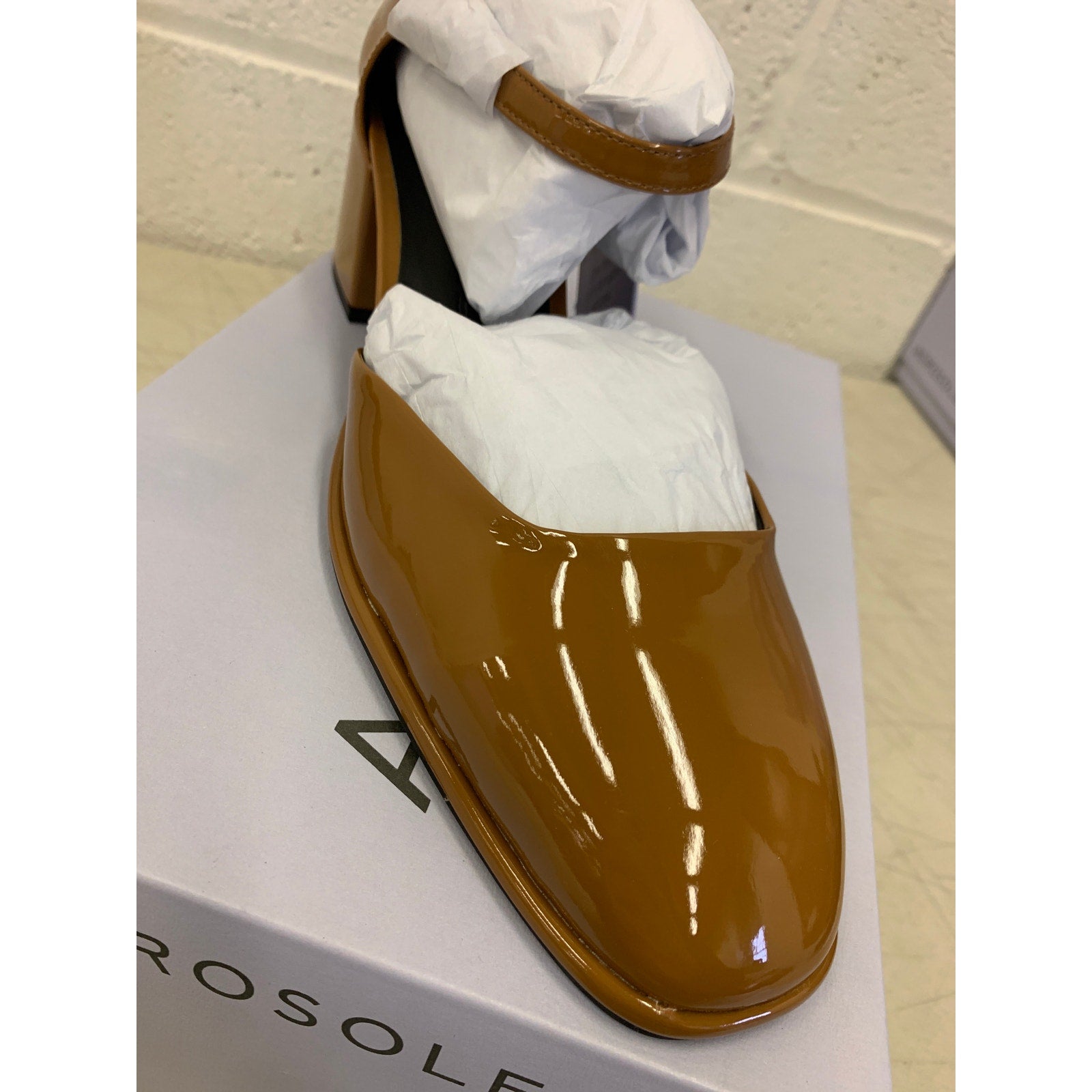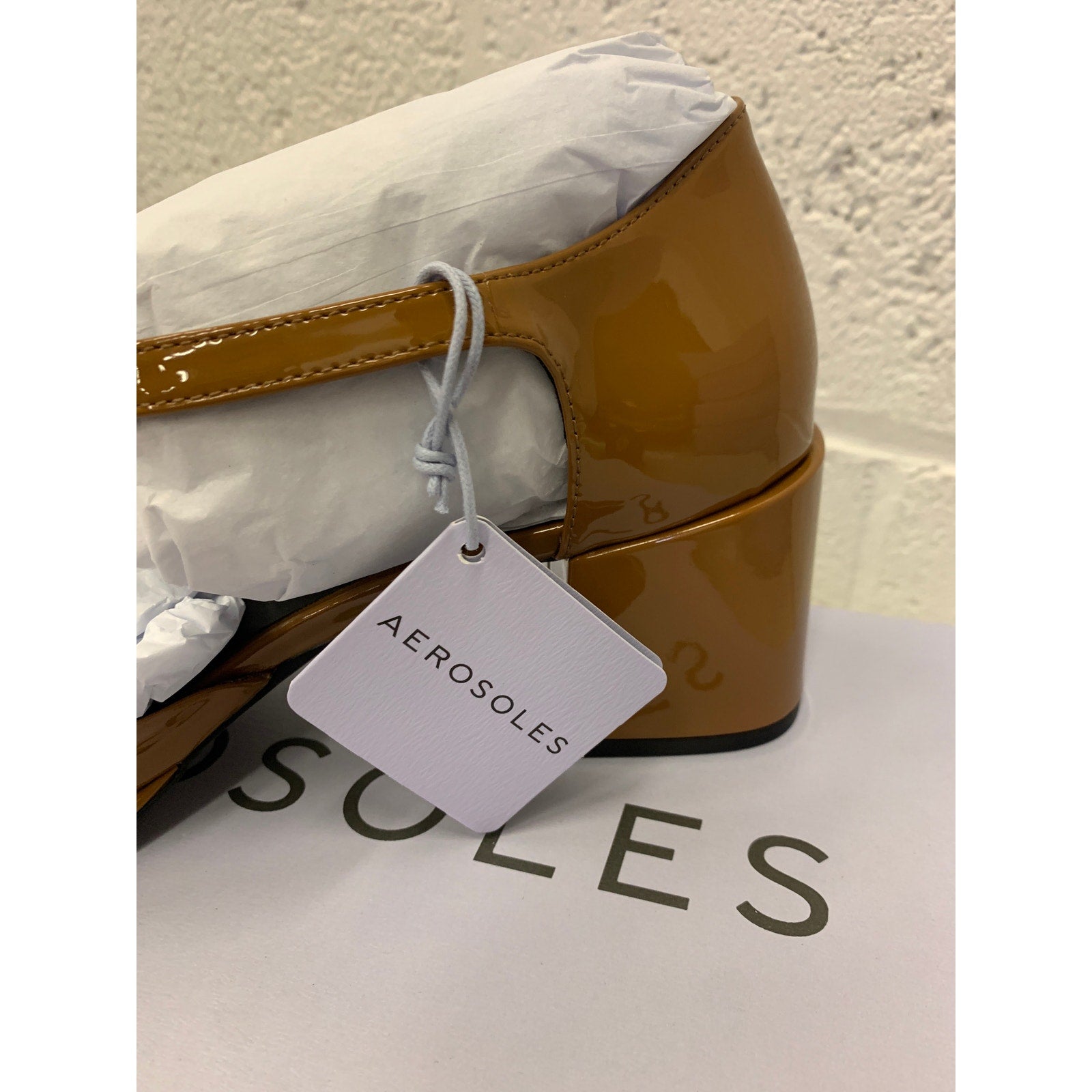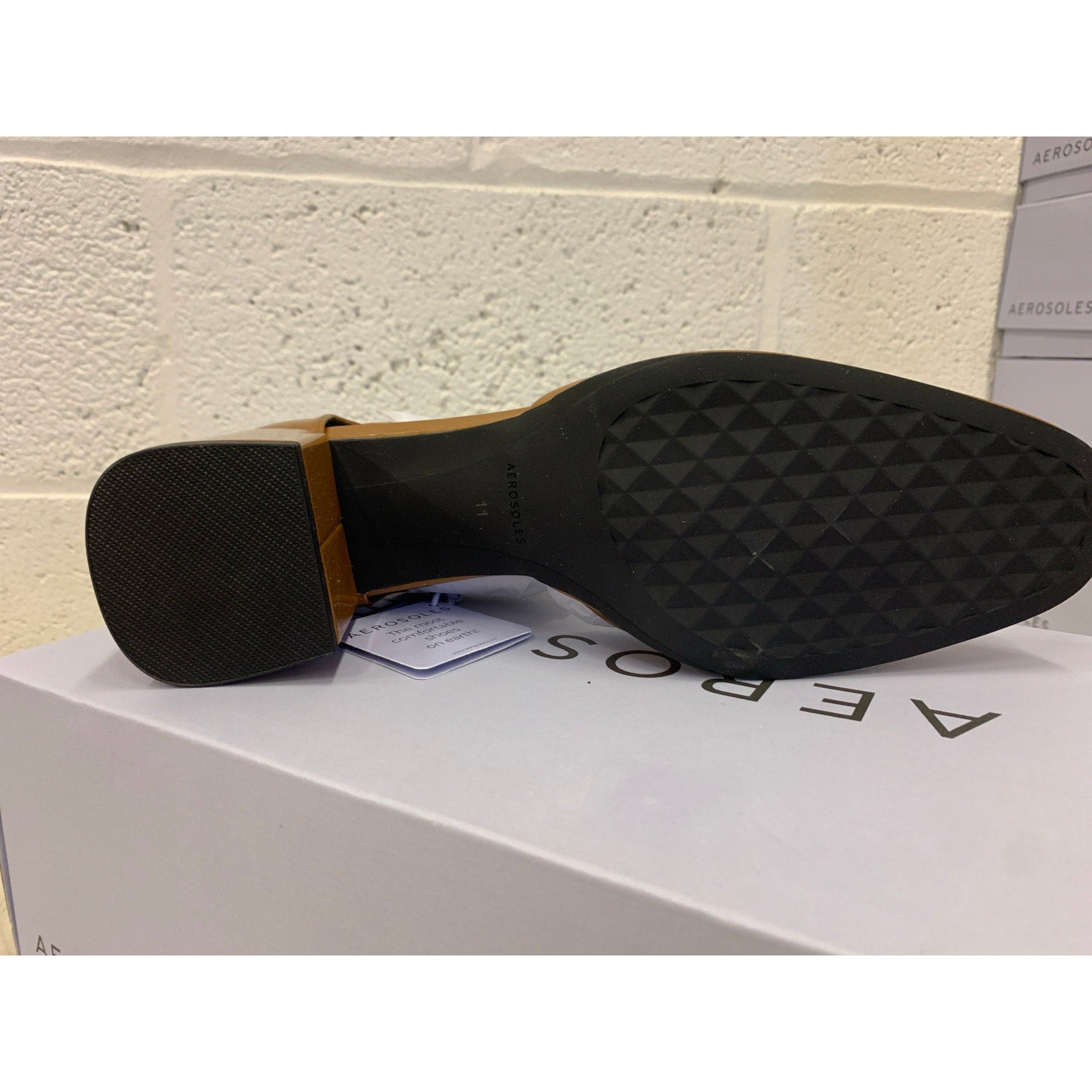 Aerosoles Women's Ankle Strap Two Piece Block Heel Pump Brown Faux Leather Sz 11