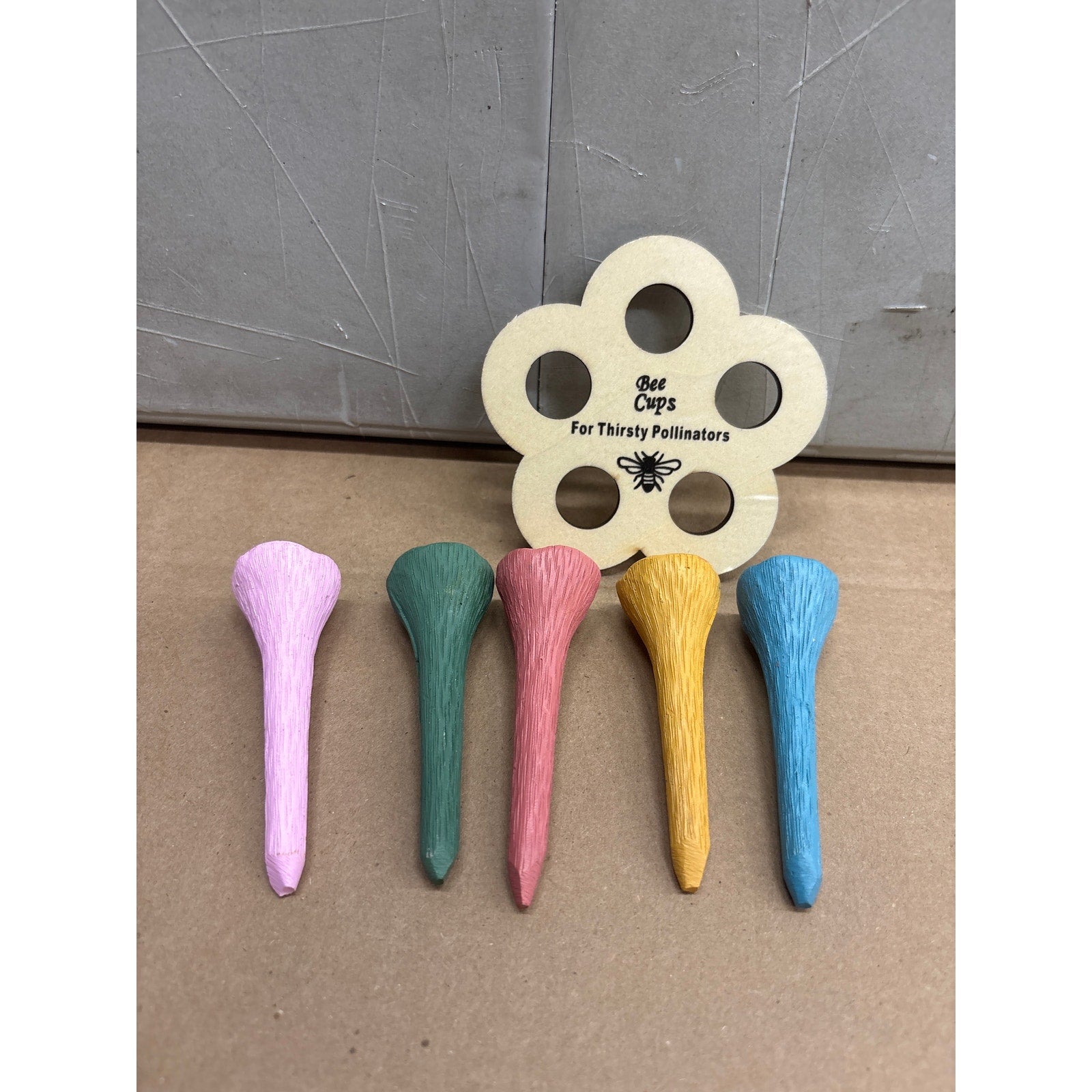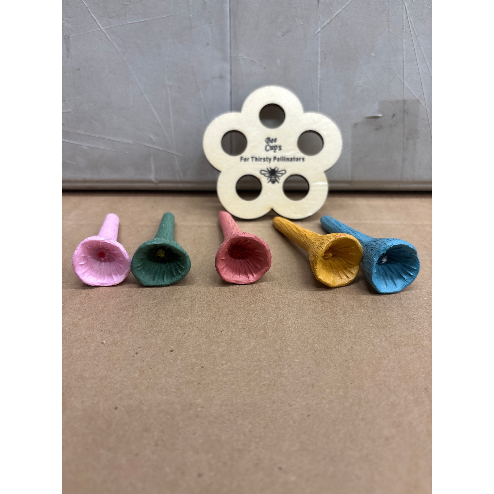 Bee Cups Pollinator Feeder Set, 5 Colorful Resin Water Cups with Feeding Tool