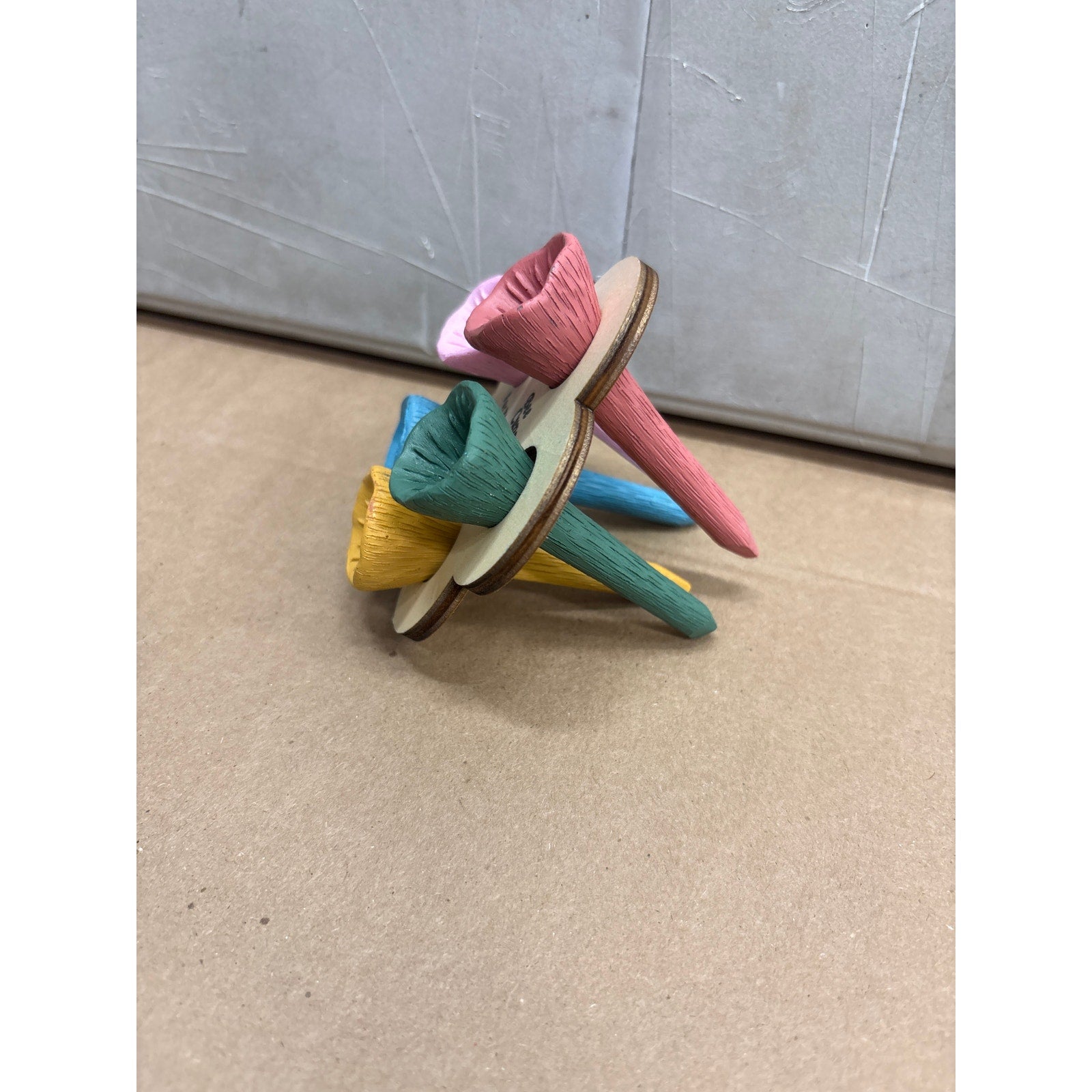 COLORS: Features 5 vibrant cups in pink, orange, yellow, blue, and mint green, each with a unique flower-like interior design