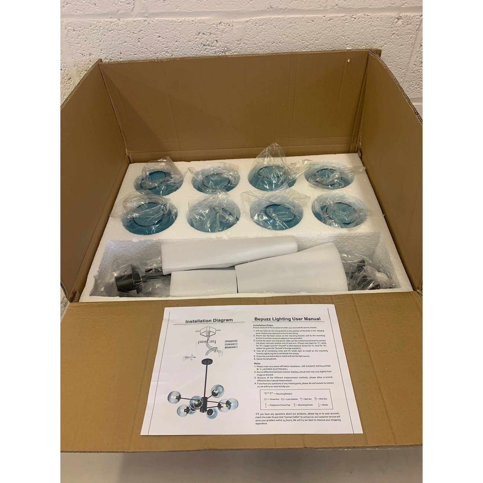 Manufacturers Description: 8-Light globe sputnik chandelier glass globe shades will make the light soft and not dazzling, creating a warm, beautiful and homey ambience. The metal brushed brass lamp body spreads a touch of luxurious and elegant. Is it the modern ceiling light that your bedroom, living room, hallway or foyer.