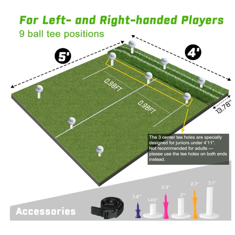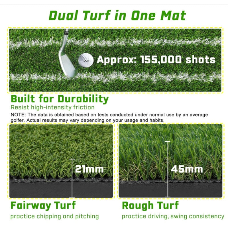 DCQ Real Feel 5x4ft Golf Hitting Mat Dual Turf Alignment & Angle of Approach Aid