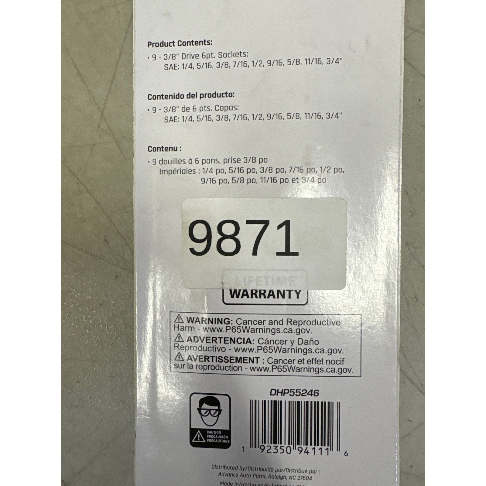 DieHard 3/8" Drive 6-Point Socket Set, SAE, 9-Piece, Hand Tools - DHP55246