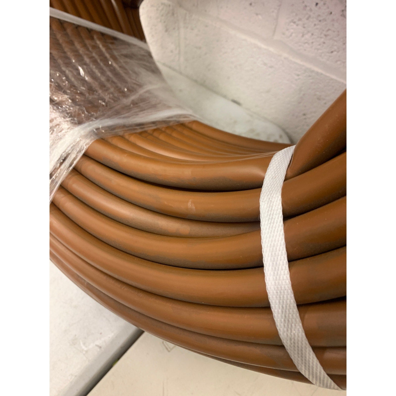 Manufacturers Description: Made with premium quality polyethylene resins, DIG's 0.700 in. O.D. brown blank poly tubing for drip irrigation is designed to meet the demands of any drip irrigation project, above or below ground, from residential gardening to commercial landscape and agricultural installations. The brown drip tubing, commonly referred to as poly tubing, blank tubing, or drip hose, is used as the primary supply line of a drip irrigation system into which drip line, micro line or drip emitters are connected to deliver water to the plant area. DIG's drip irrigation brown poly tubing has outstanding environmental stress-cracking resistance, high burst strength and UV protection for durability and long life. Used as the primary supply line in a drip irrigation system into which micro tubing, micro line, drip emitters or drip line are connected
