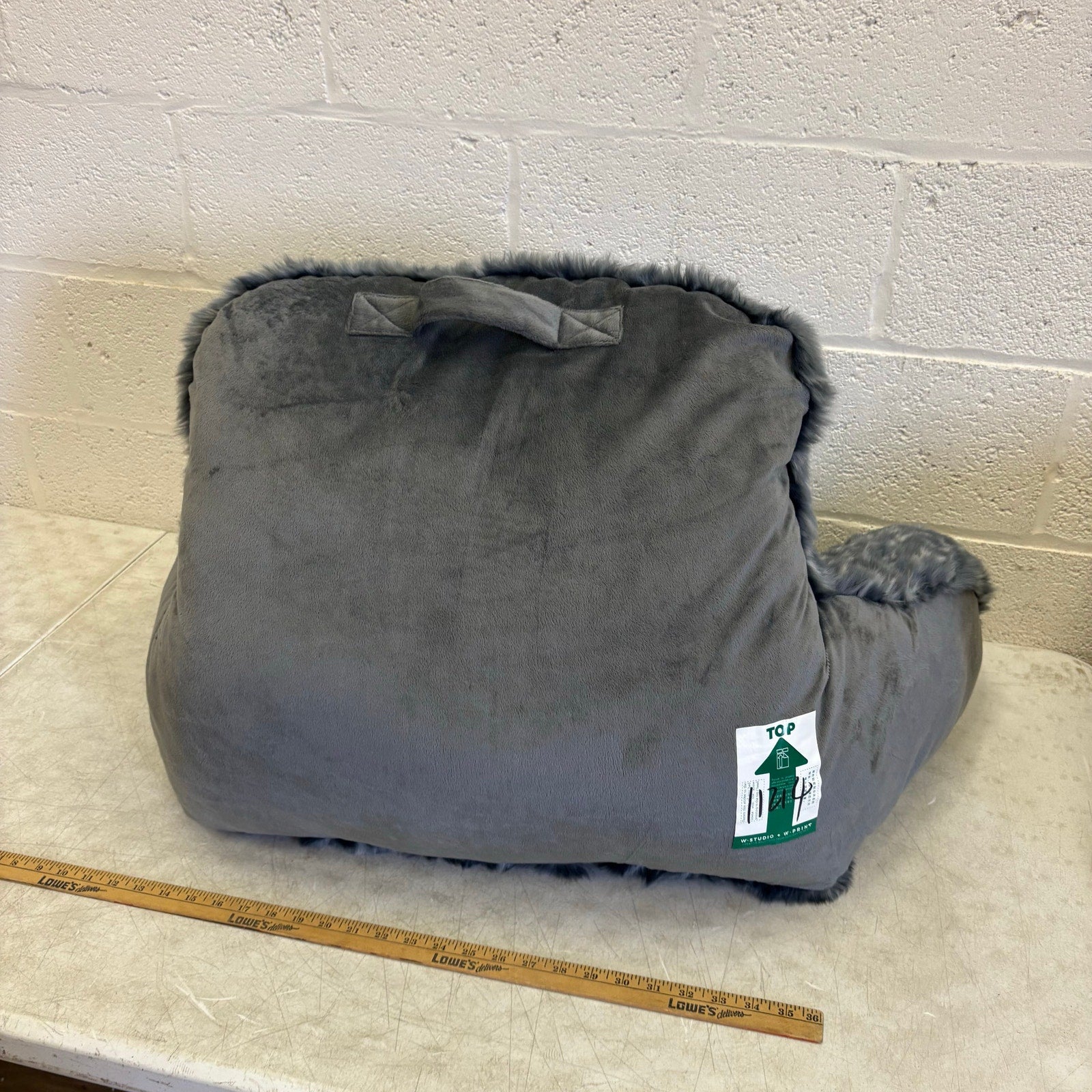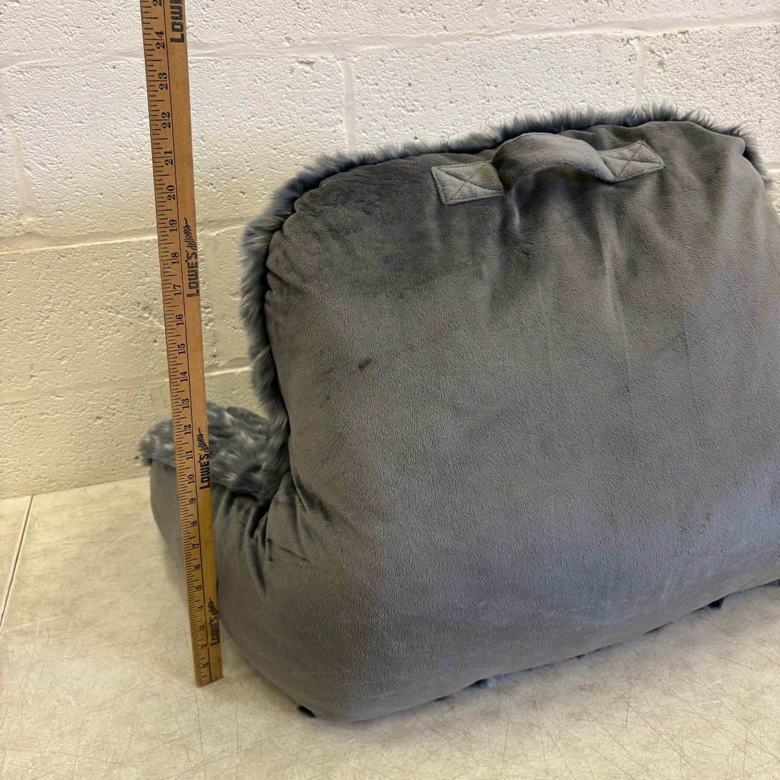 Faux Fur Plush Backrest Pillow, 35"W x 20"H, Reading Pillow Soft - Gray w Spots