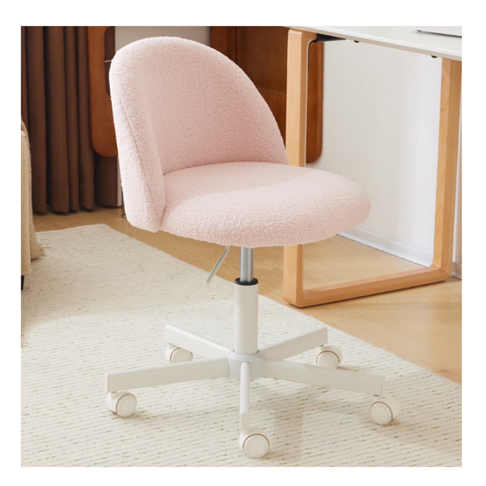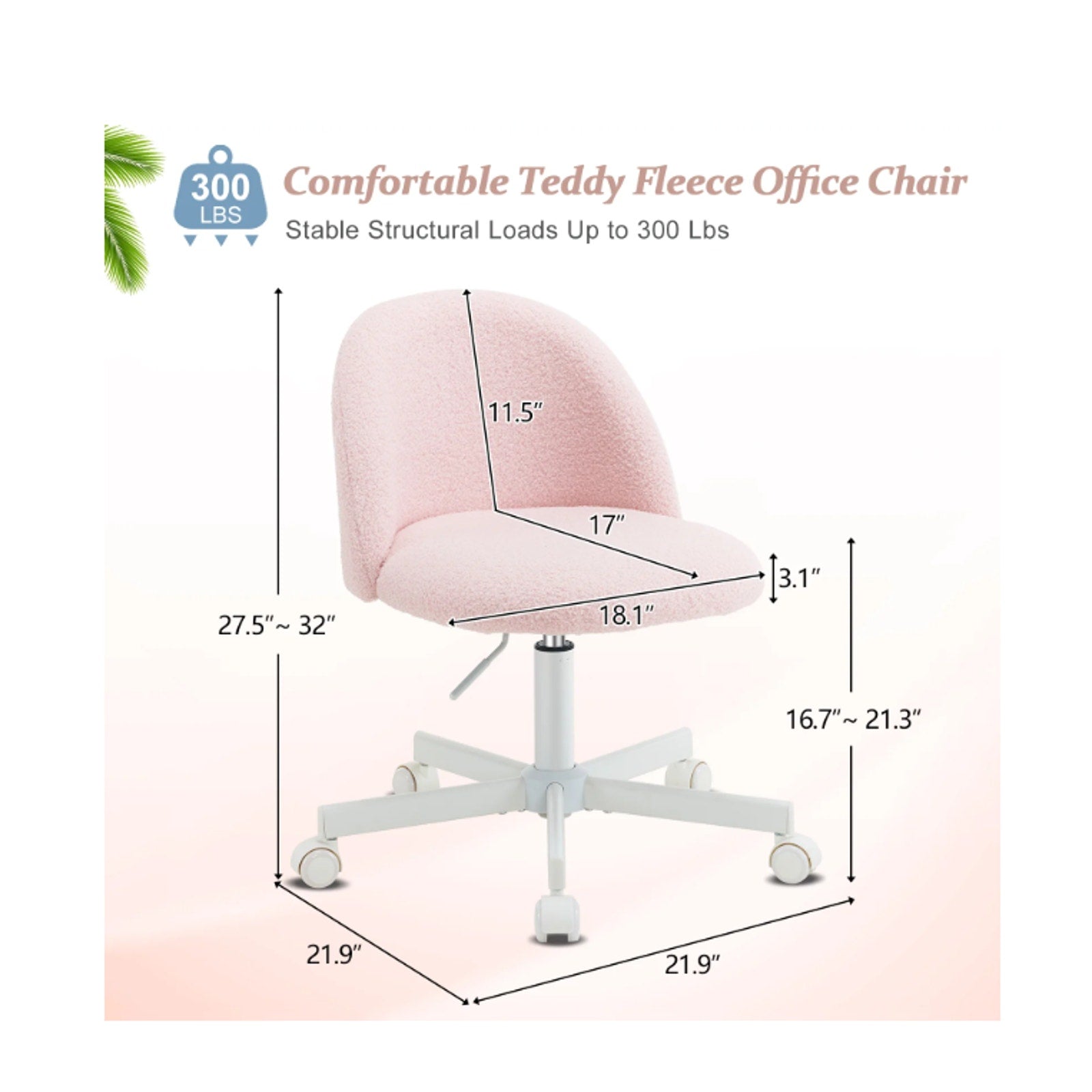 Fleece Swivel Office/Vanity Chair with Adjustable Seat & Wheels. Armless - Pink / White