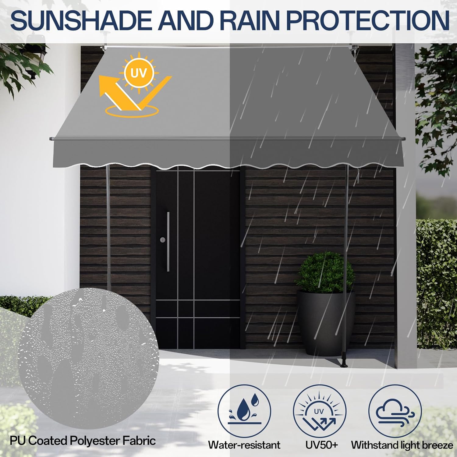 Versatile Use: Ideal for patios, gardens, balconies, and entryways, this retractable awning offers reliable sun and rain protection while creating a comfortable, private space for relaxation and entertainment.