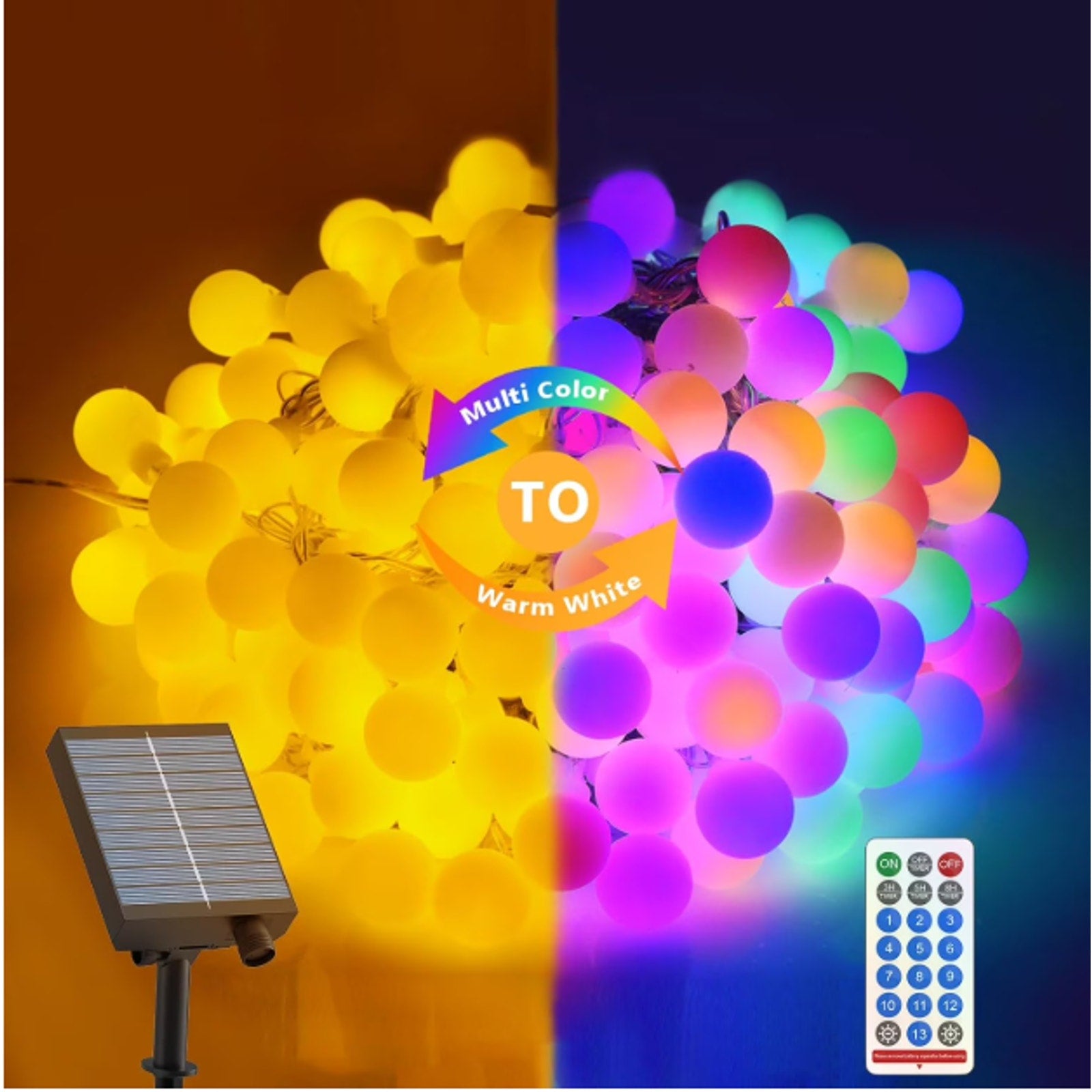 LumosGlow 55FT Solar Color-Changing String Lights 100LED, 1200mAh 8 Modes IP67